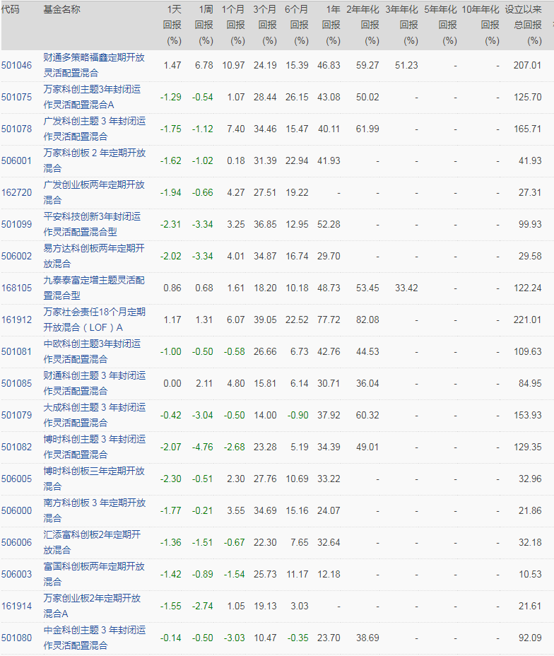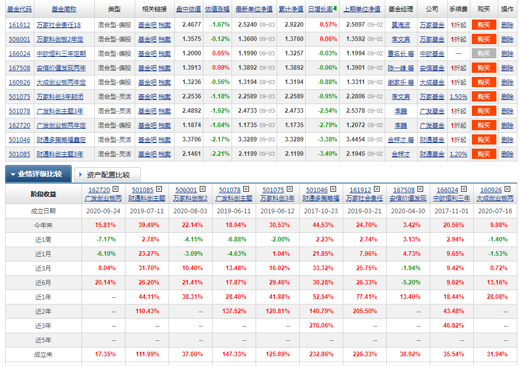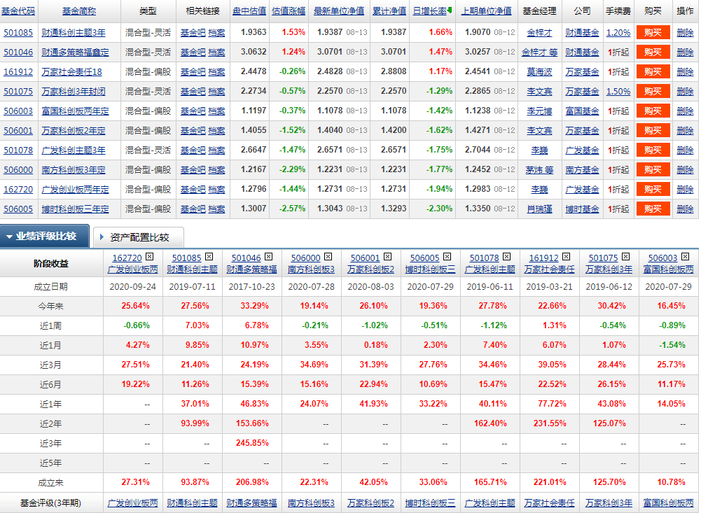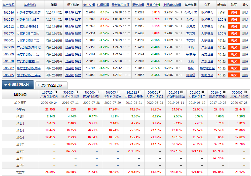相对来说,万家,财通,广发做科创板或创业板的基金非常好,而我相对喜欢万家的,他家的基金基本大多数都是精品,虽然基金公司不大,但是真是有好封闭基金,就拿万家社会责任161912来说,今年净值增长22.66%,一年77.72%,二年231.55%,是一支非常棒的能够长持的封闭基金。