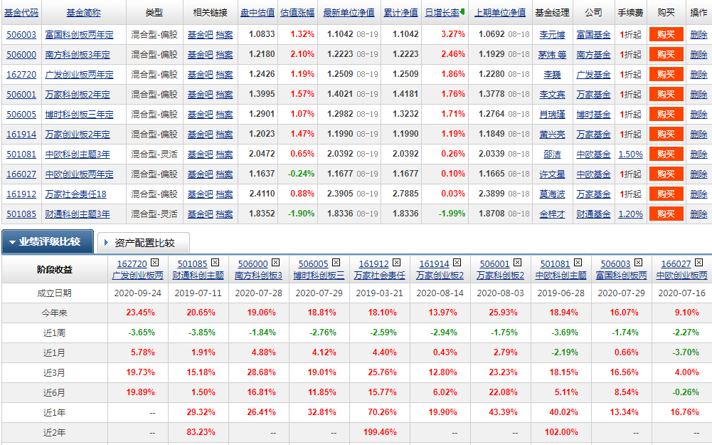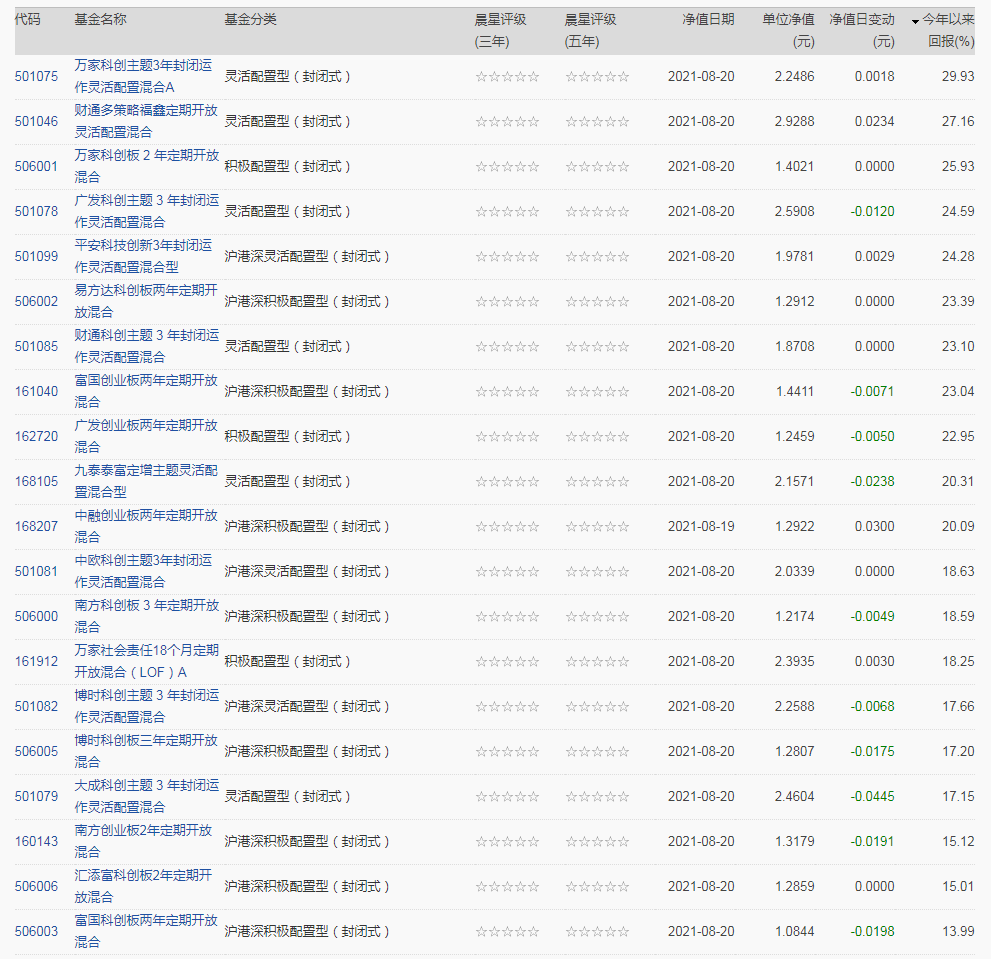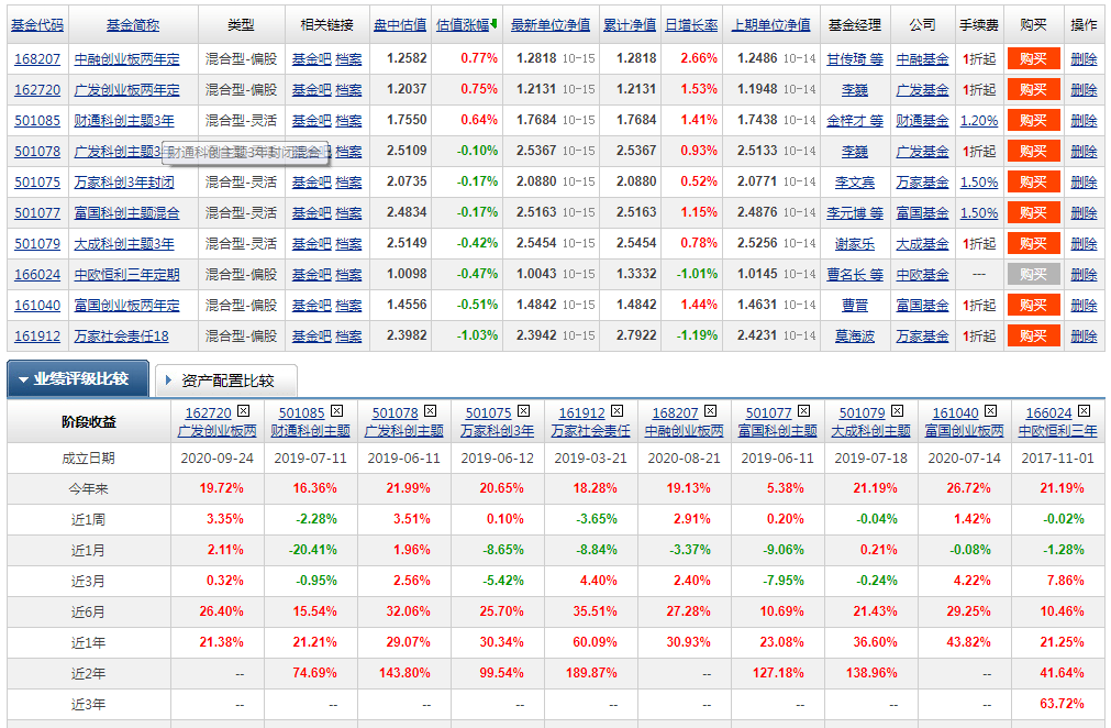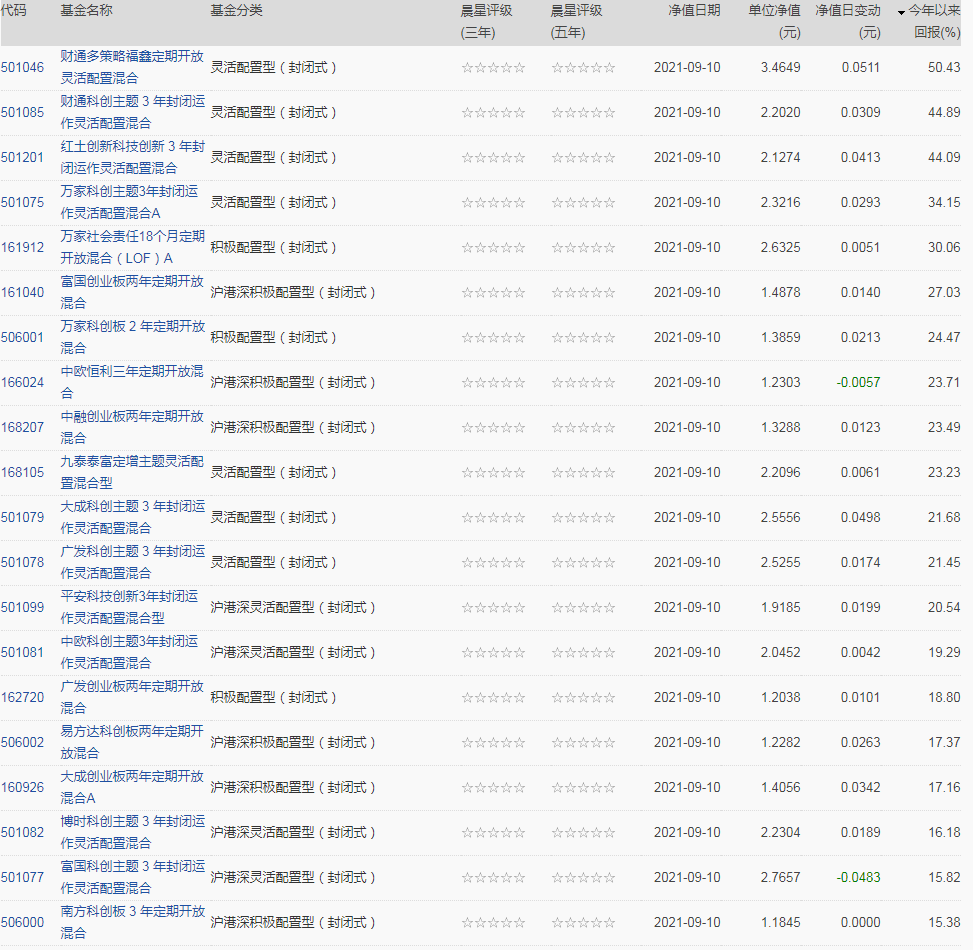 上面此图是今年排名比较靠前的一些封闭基金,可做为参考。