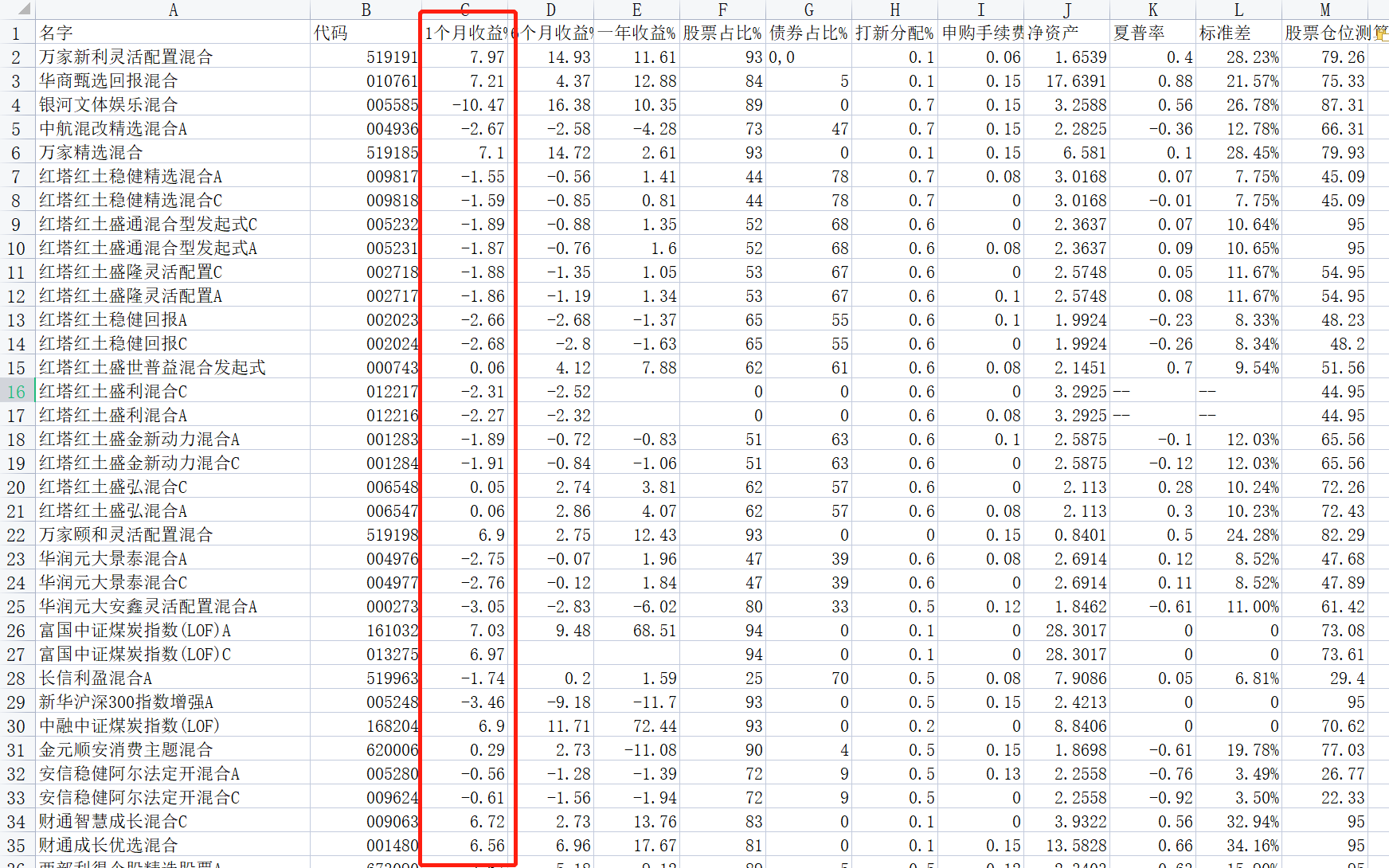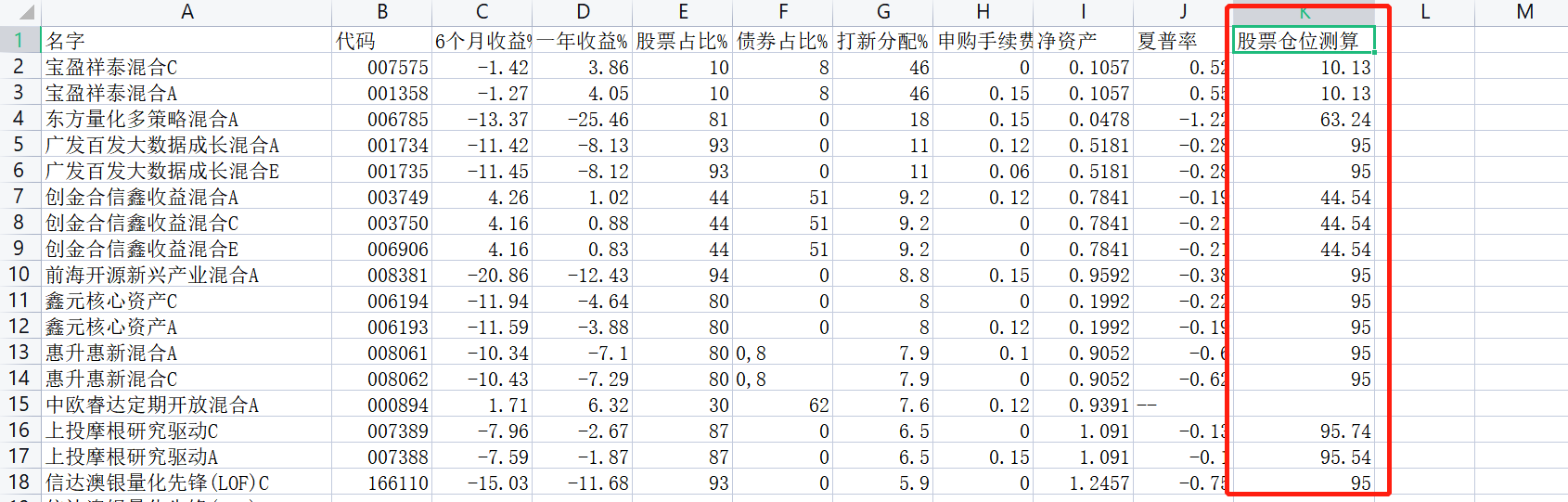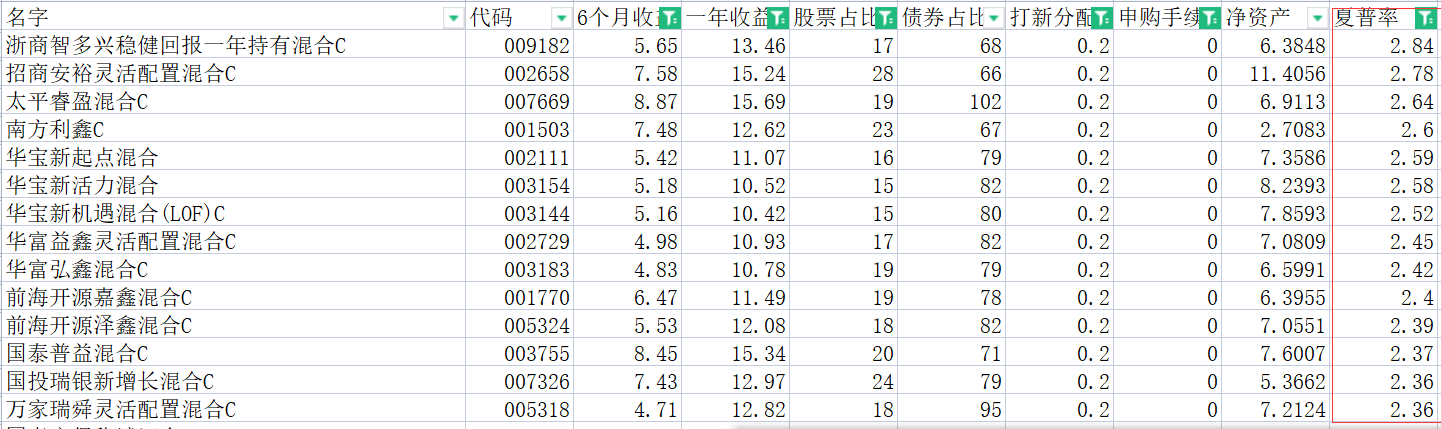 带了夏普率的数据见下方,因为这个数据是后来加进去的,检查了几个没有问题。所以之前没有放上来,大家觉得合适的,就拿去吧。刚好,今天天天基金更新了,我就一并更新一版本吧。