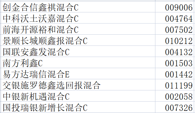 例子如下,包括基金名称,代码,近半年收益,近一年收益,股票占比,申购手续费,基金净值