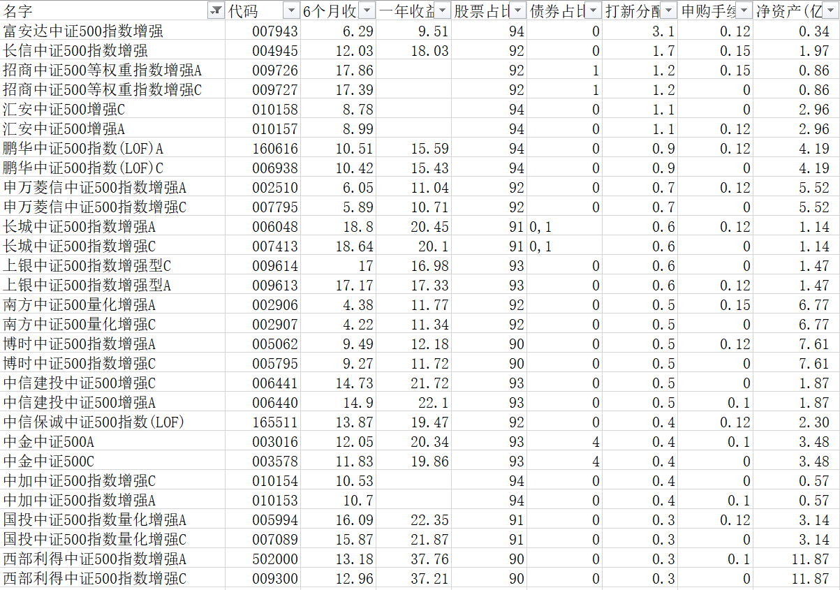 5:比如最近大家讨论比较多的中证500,可以通过excel筛选出来(下面是例子)