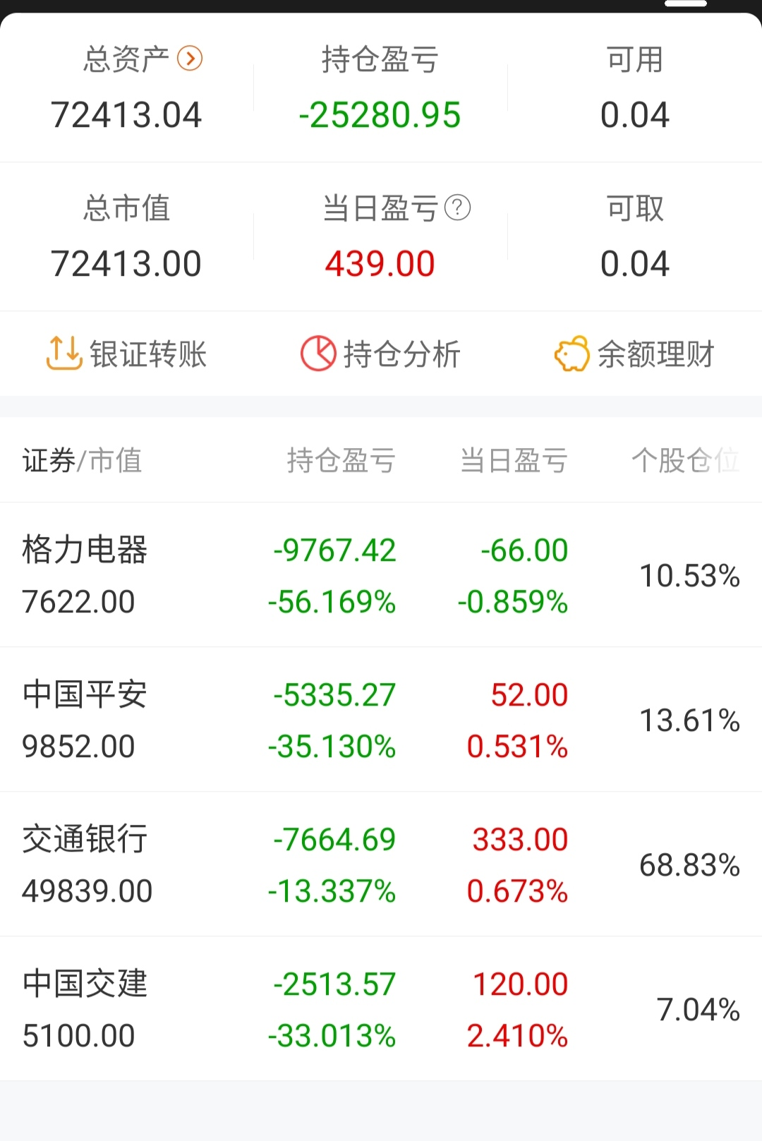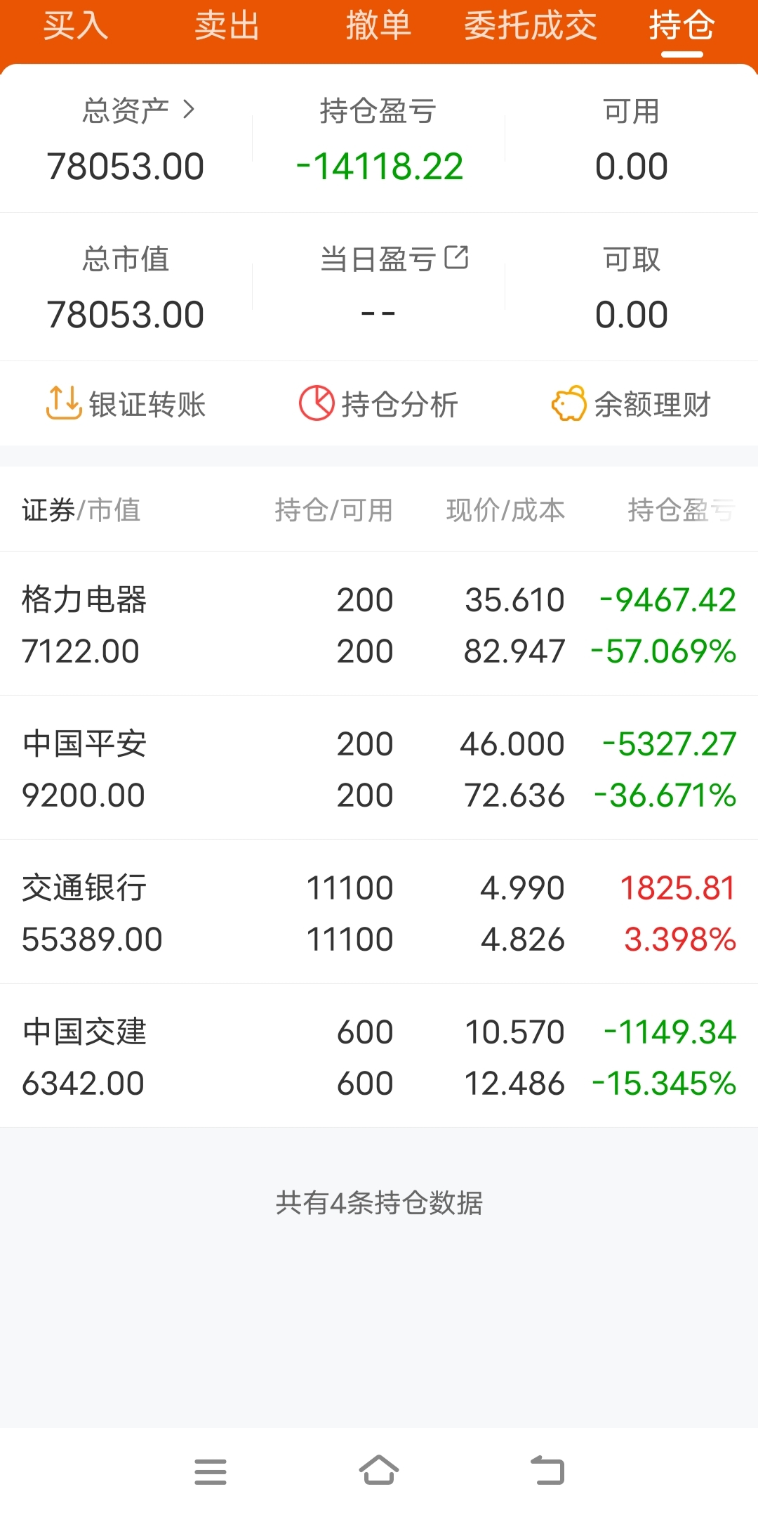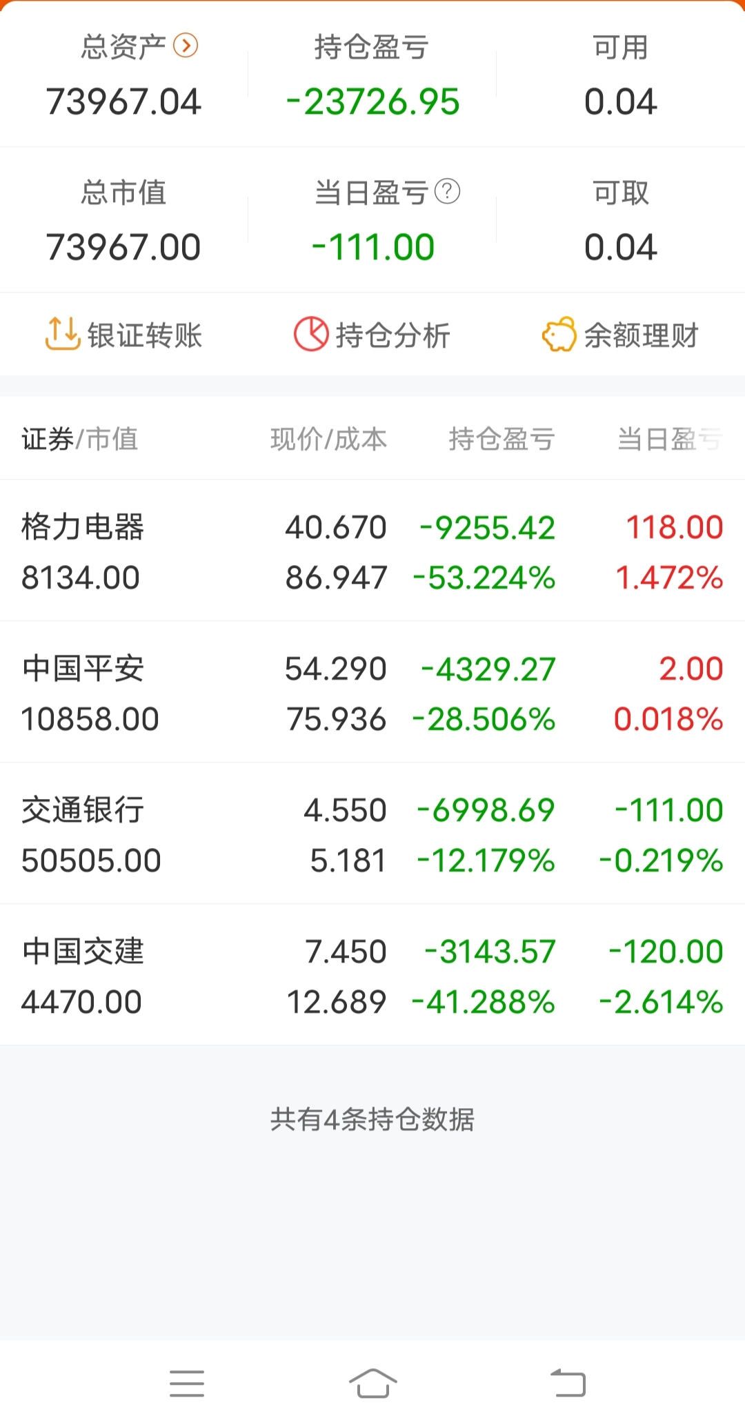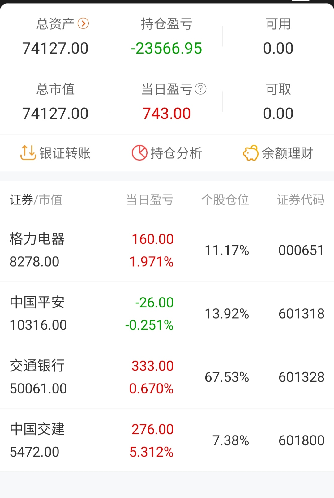 平安、格力是去年1月买的,平安最初八十二三买的,通过做T和减仓,到现在的成本。