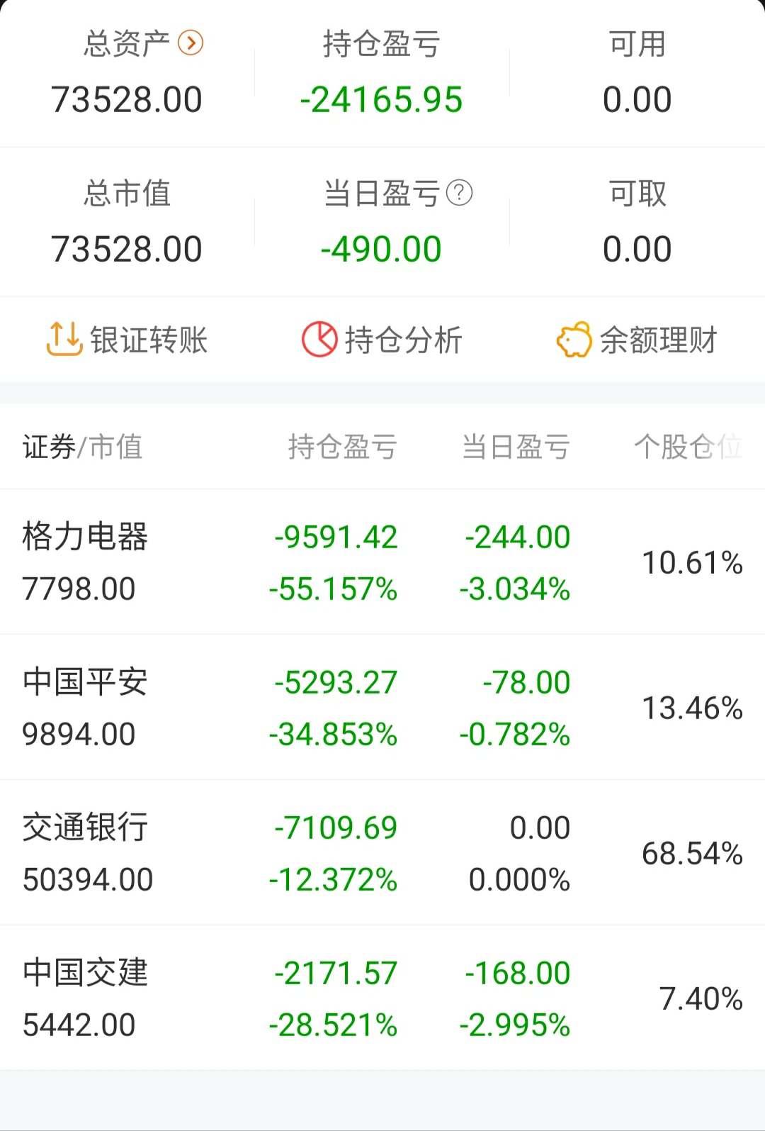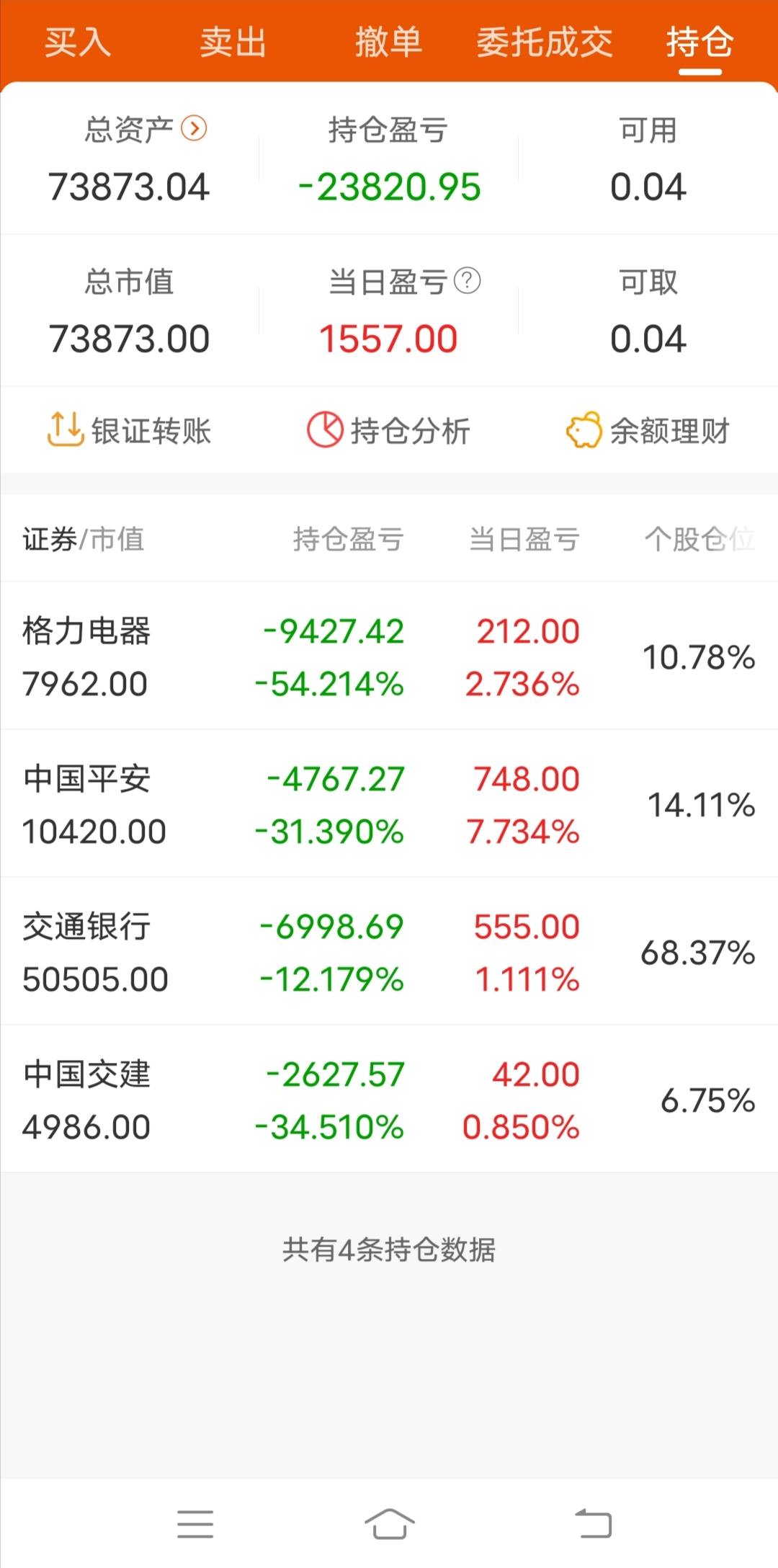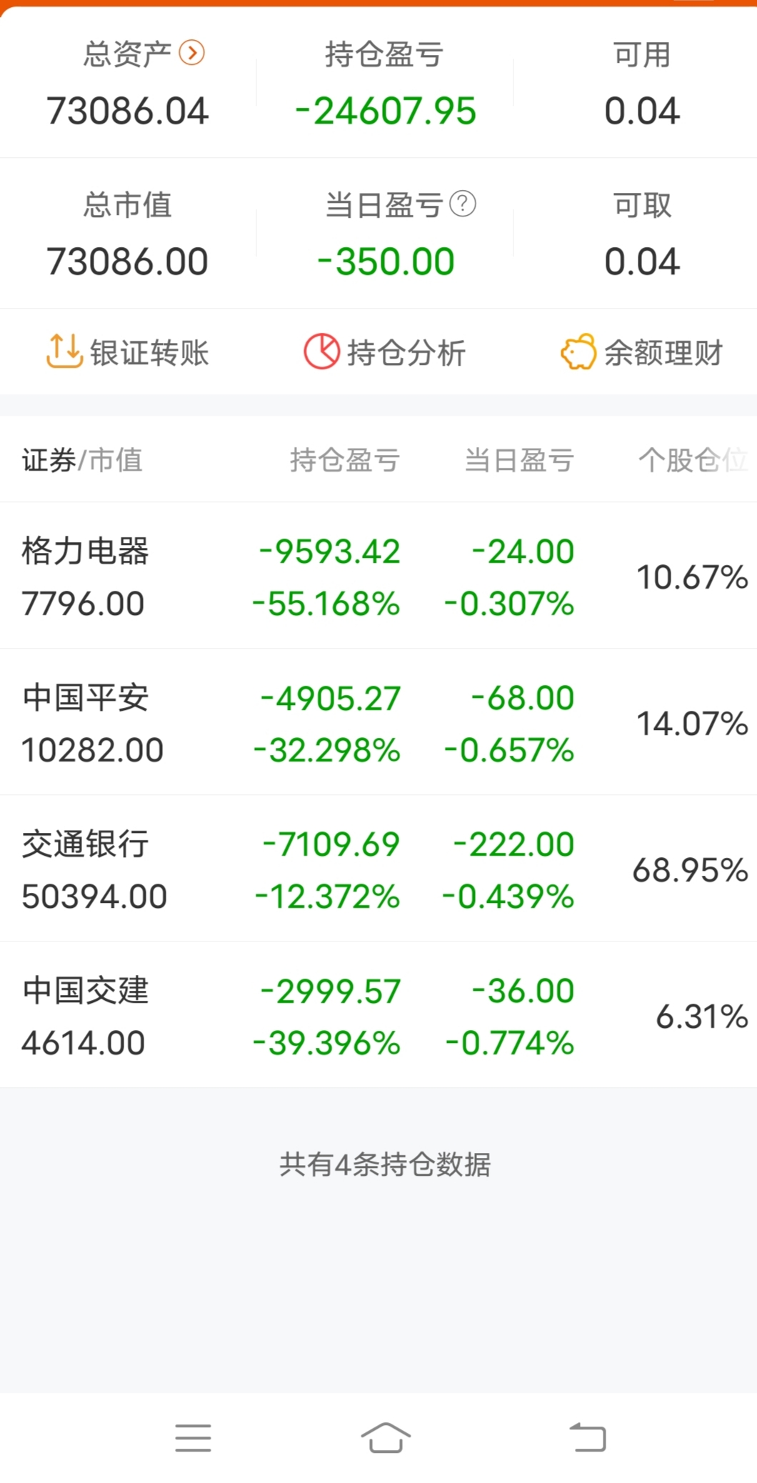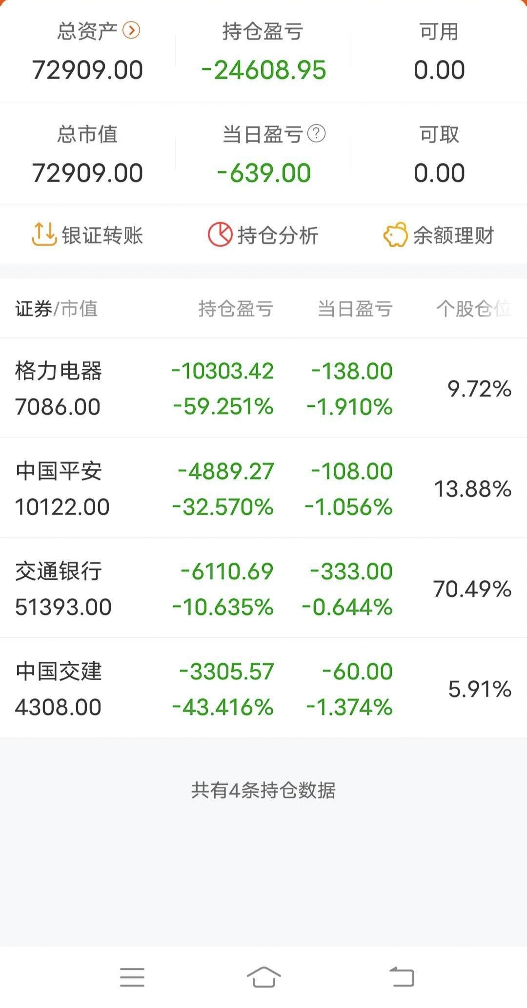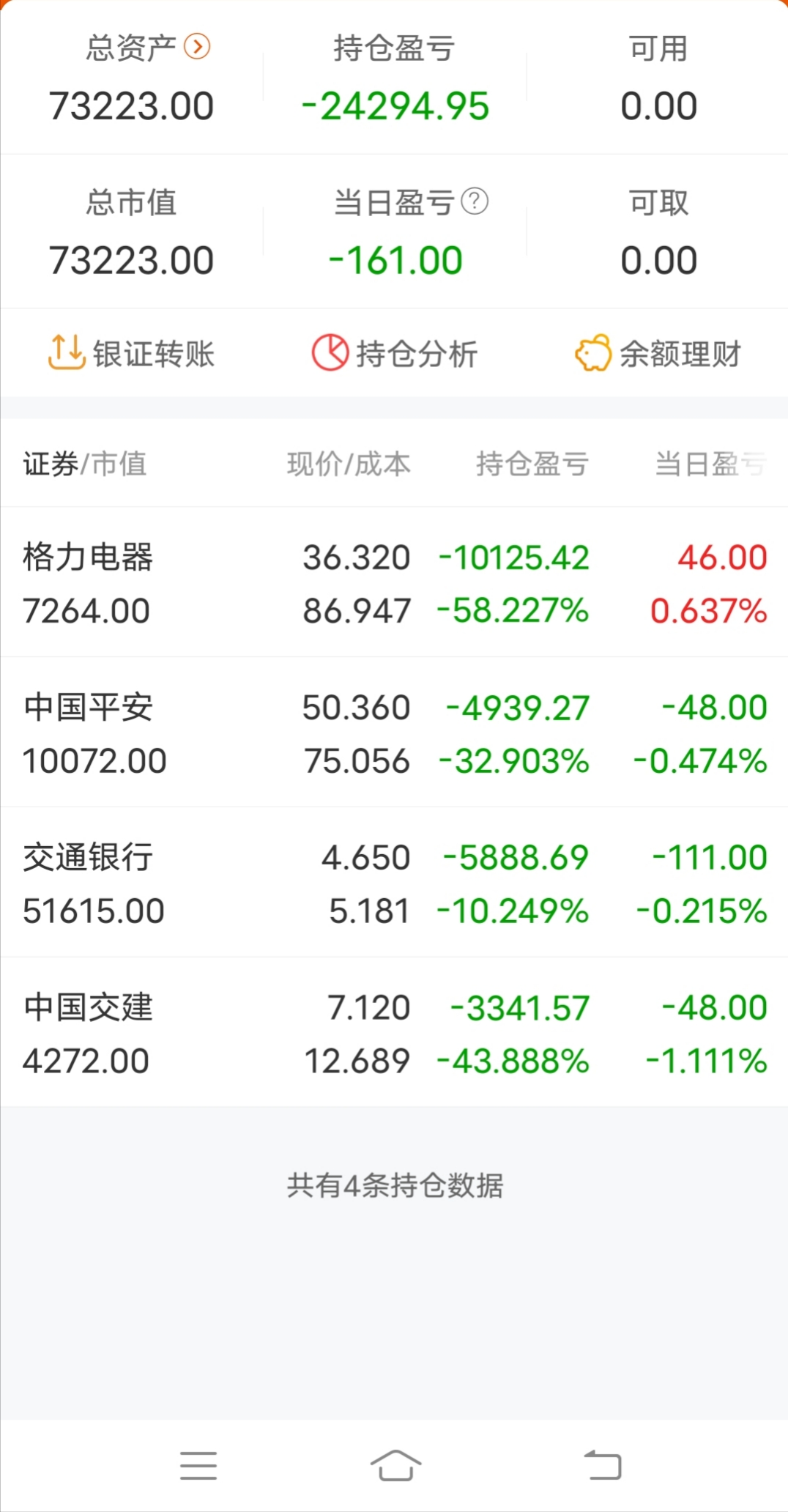 平安、格力是去年1月买的,平安最初八十二三买的,通过做T和减仓,到现在的成本。