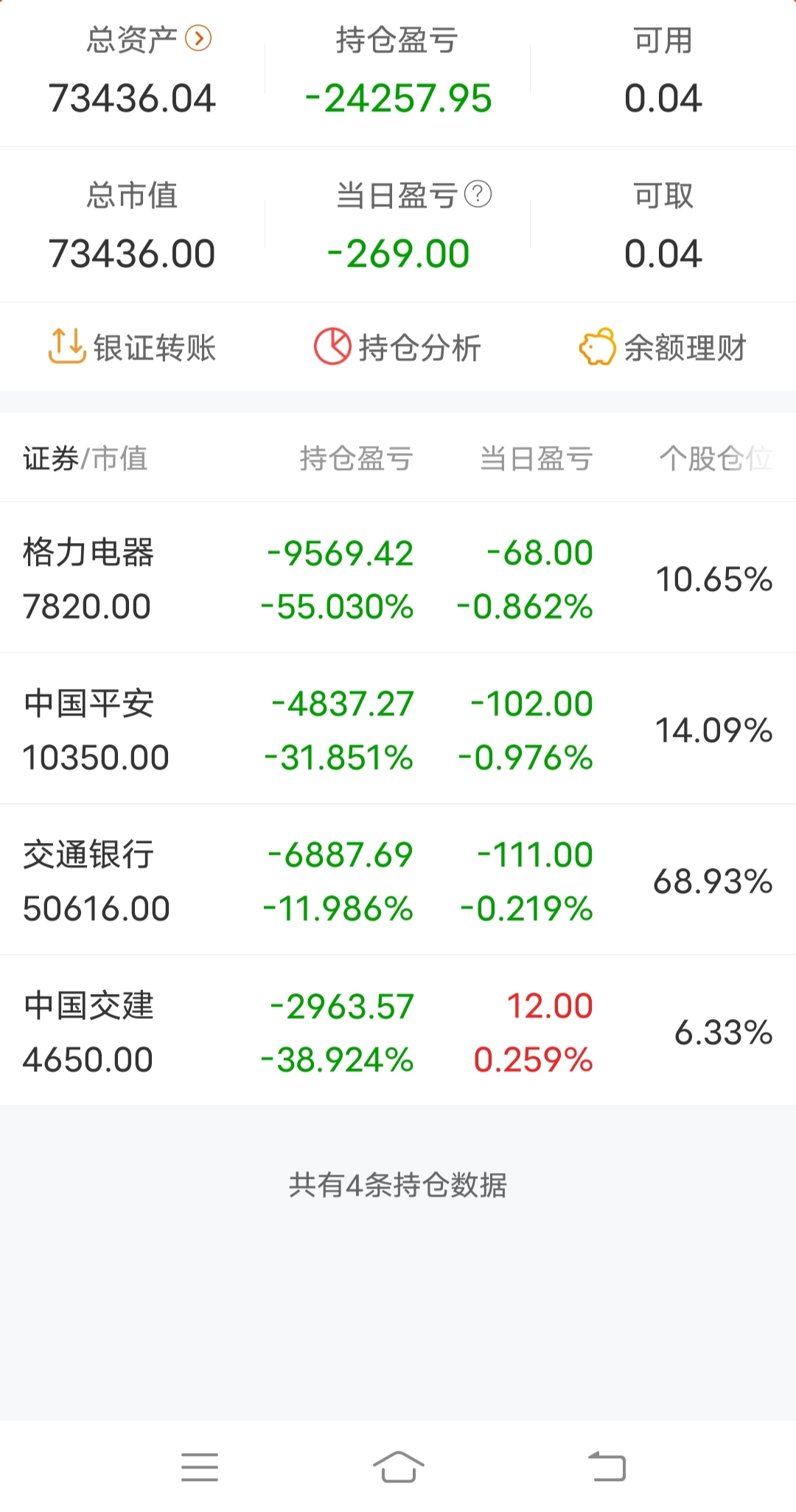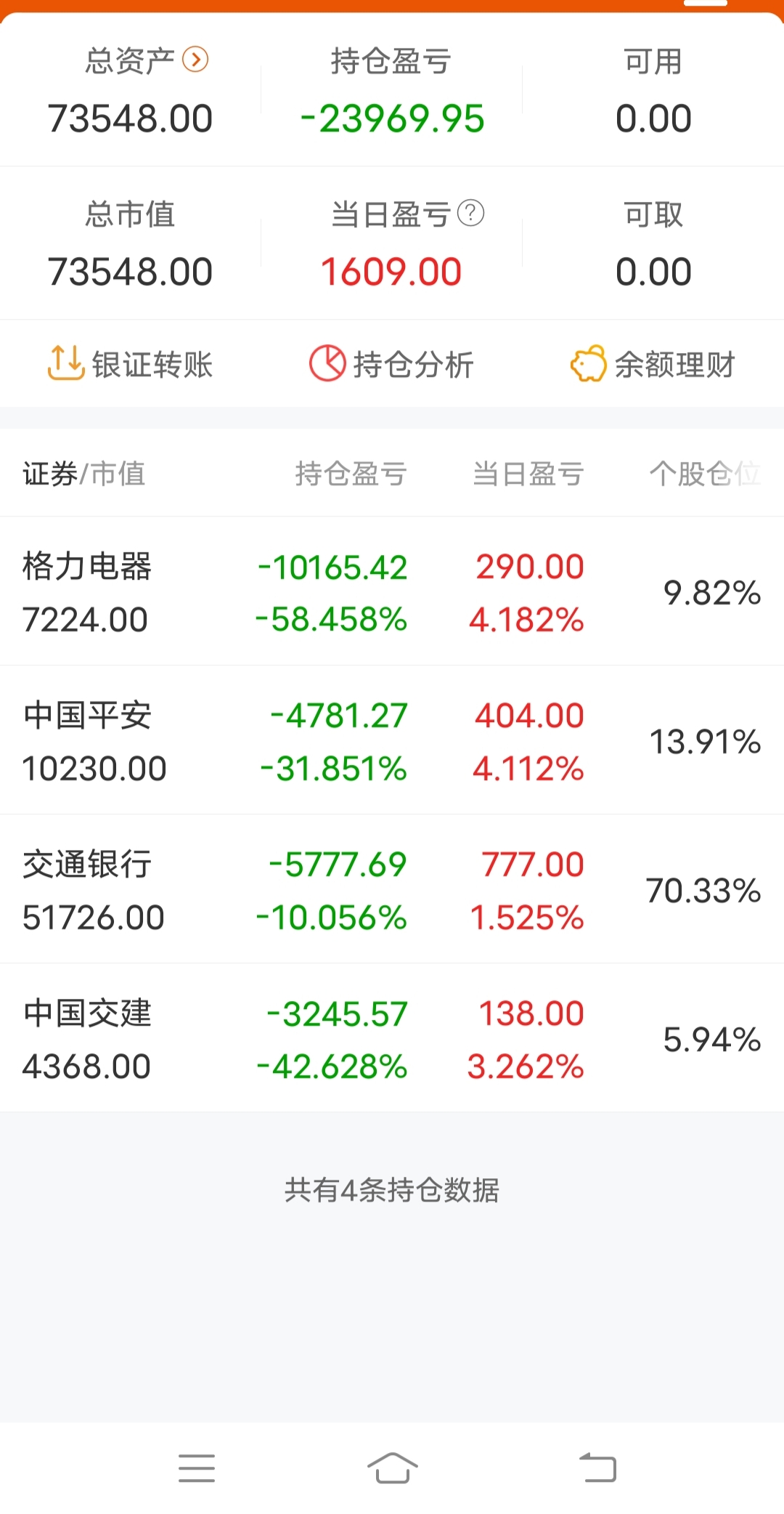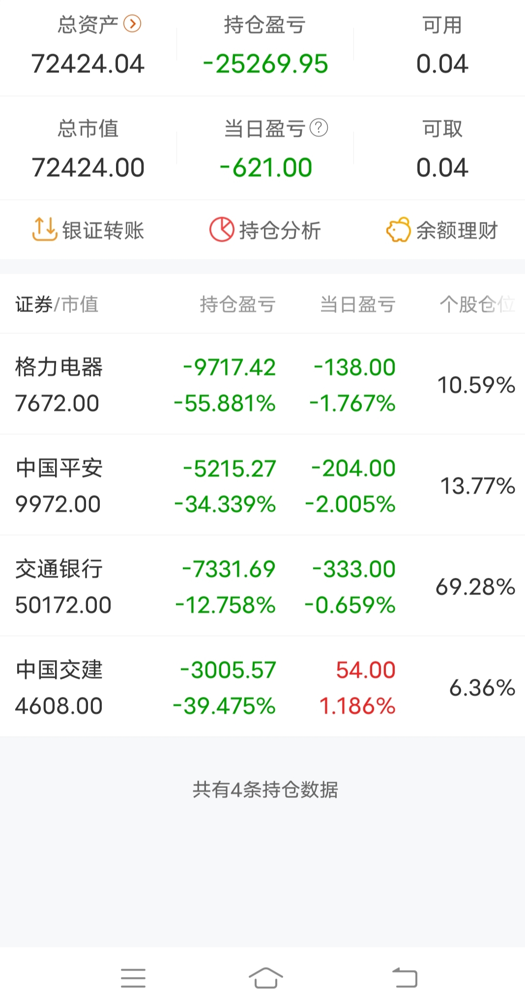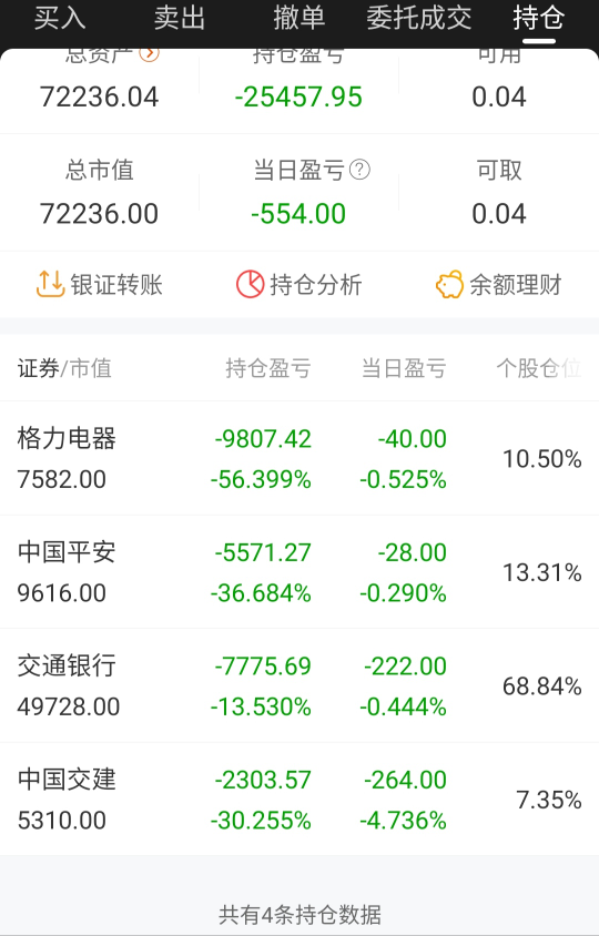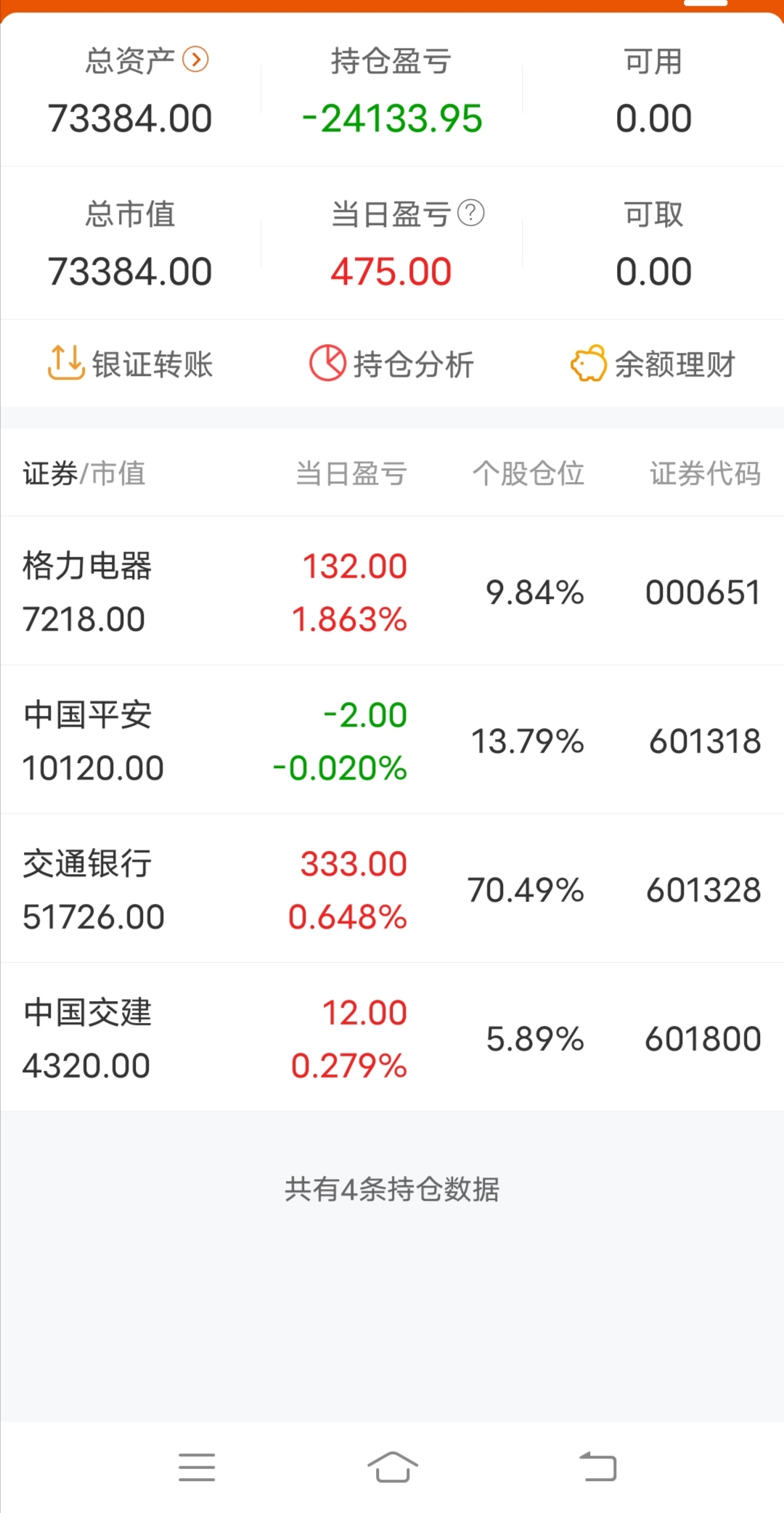 平安、格力是去年1月买的,平安最初八十二三买的,通过做T和减仓,到现在的成本。