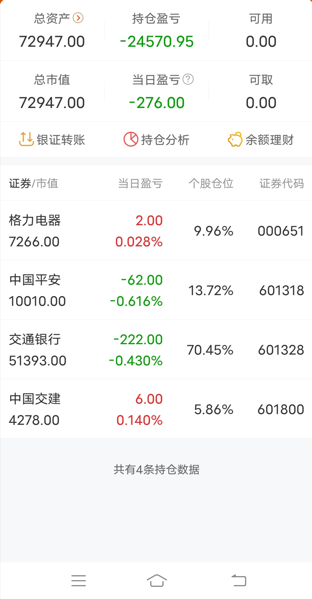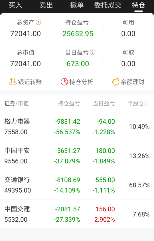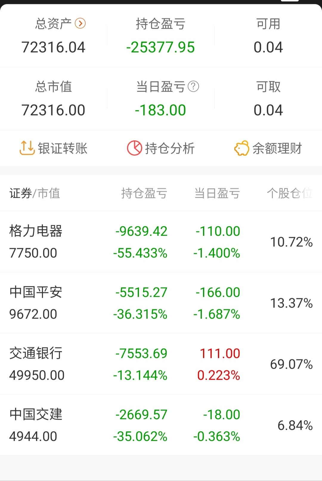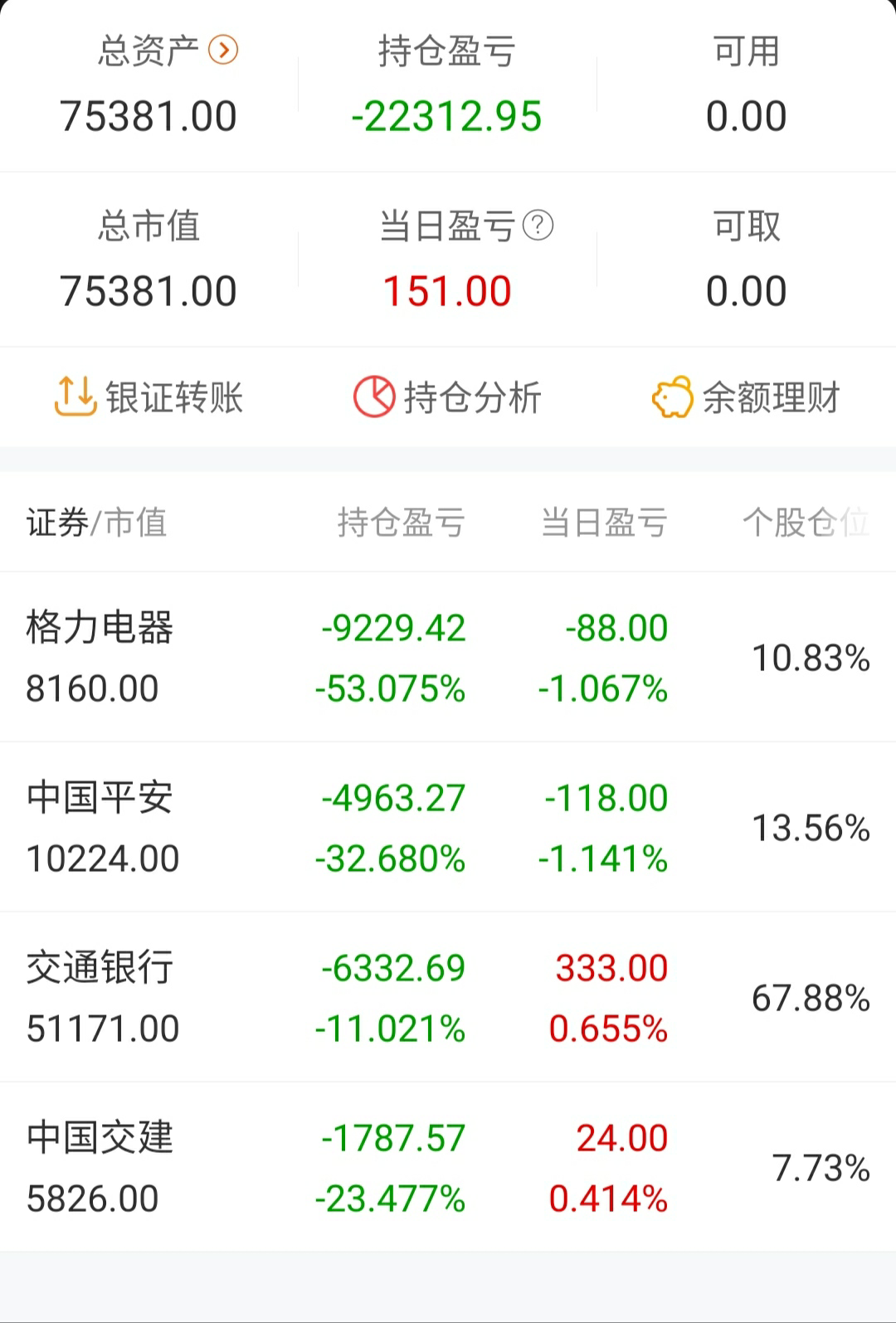 账户里交行和交建都好多年了,交建没动过,交行买入后加仓了半年摊低了些成本就卧倒了。