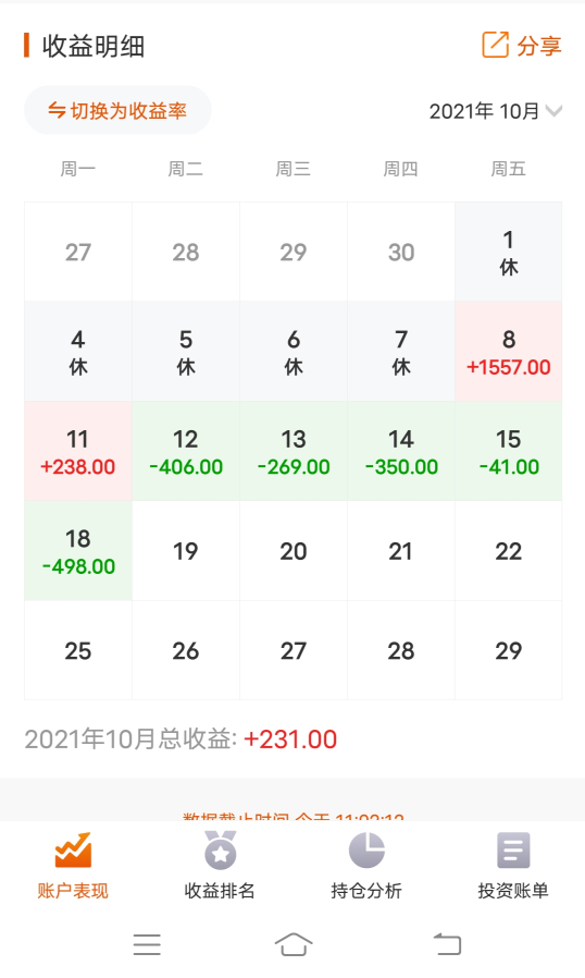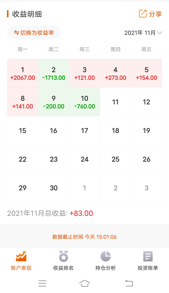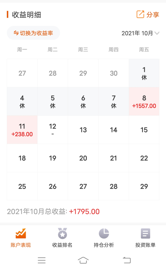 11月赚的太少了,因为股票买的基本都大亏,但是还是戒不了,老老实实玩转债多好。