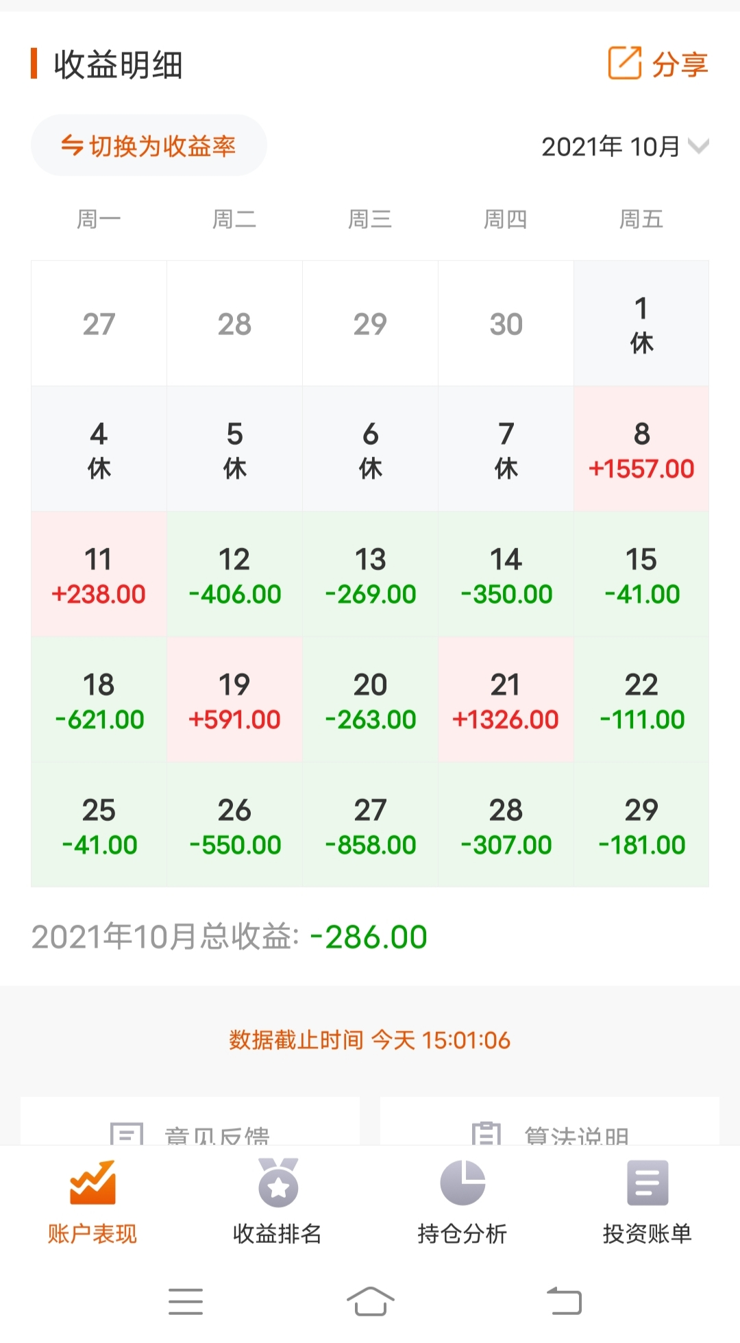 发现近七八个月的一个规律,如果每个月第一天就走,都是赚钱的,如果第一天不赚钱,后面亏损就会很大。