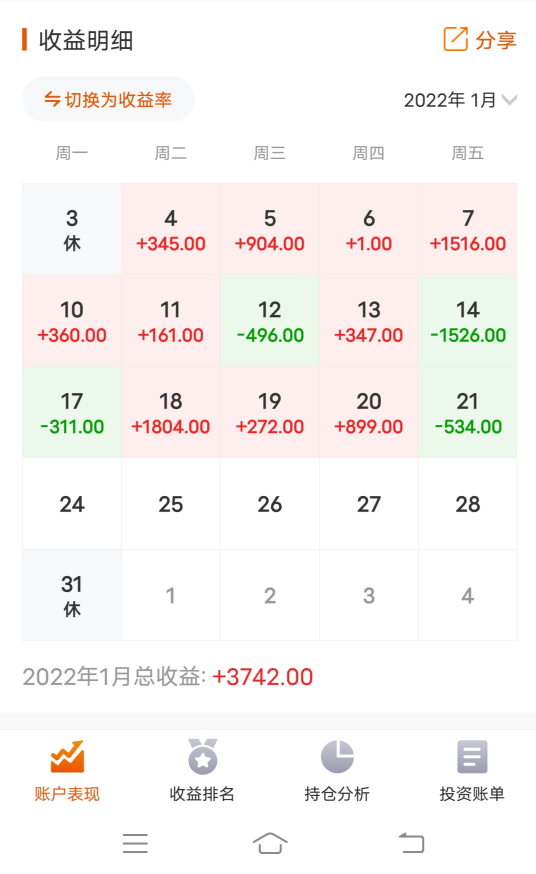 昨天大亏,今天正好把昨天亏的赚回来。发现每次贴图实在太占空间了,以后就不发图了,记录下每天感想算了。