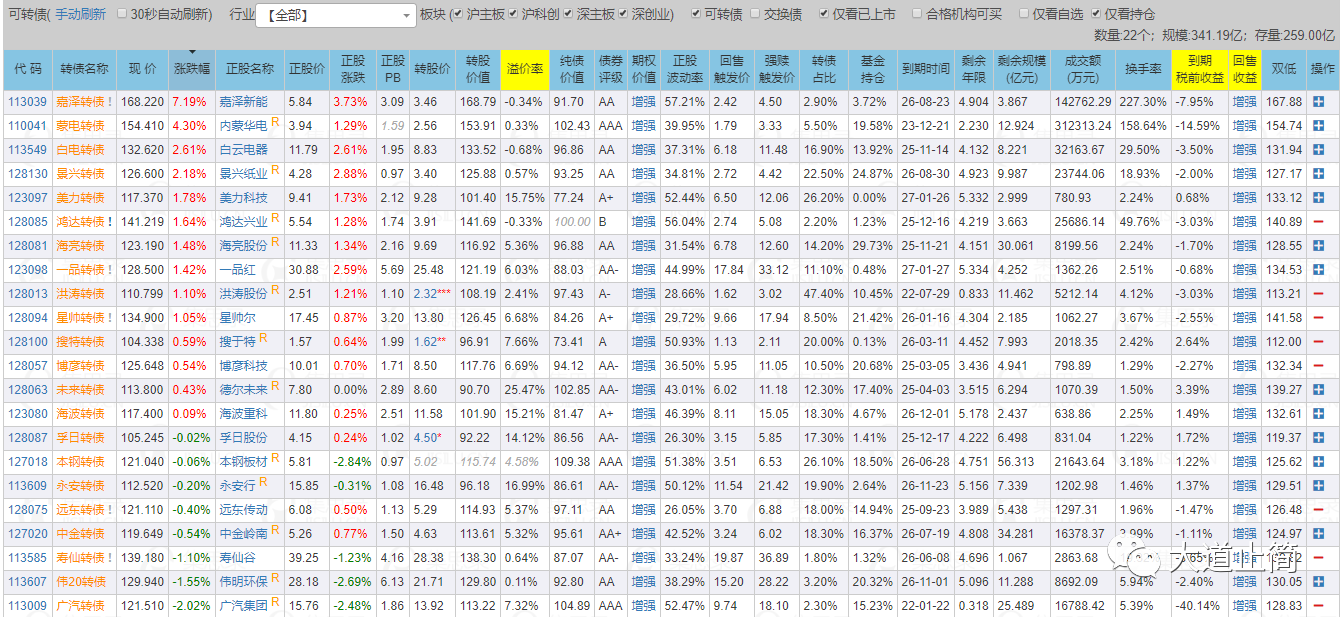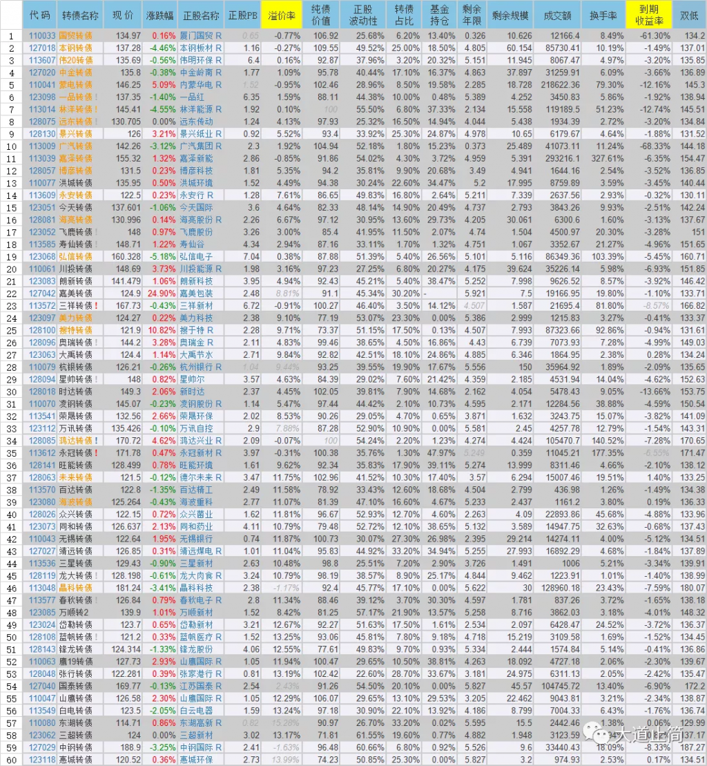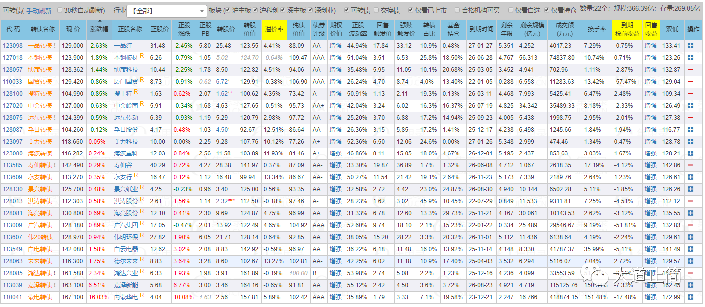 今天把标题改了改,从双低改成了三低了,主要原因是所谓的双低公式大概如是:转债价格+n*转债溢价率*100(n为溢价率倍率因数,n越大权重越大)