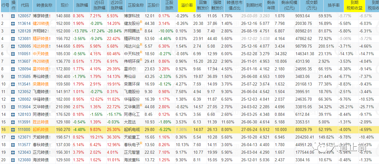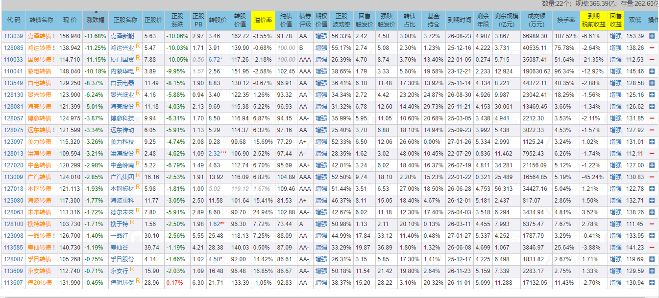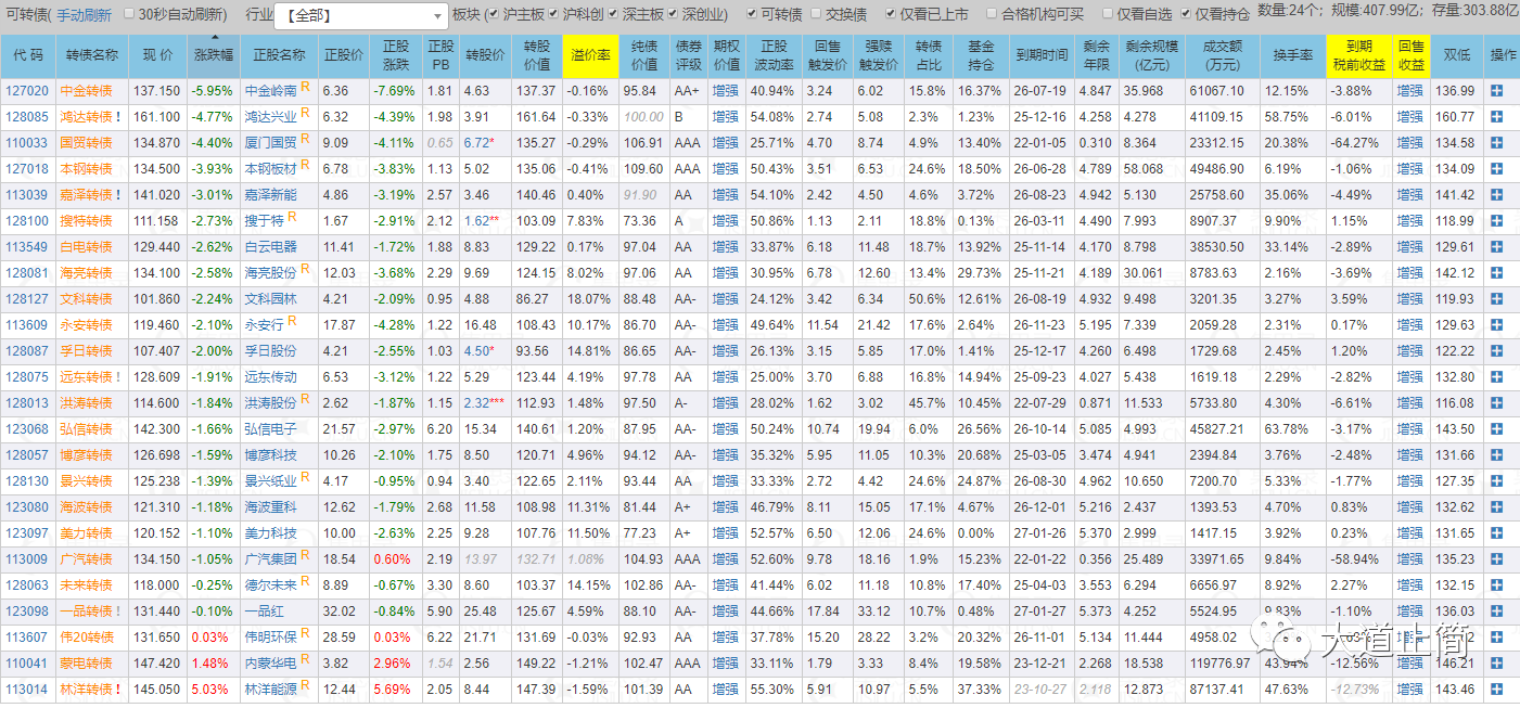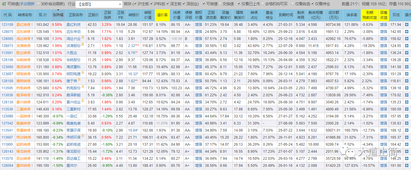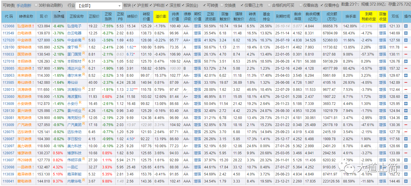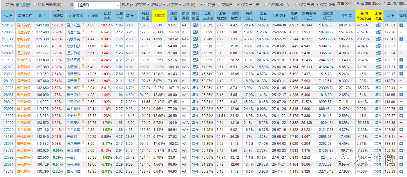 今天翻红的只有三支票(嘉泽、白电、海波),一品转债平收,其他18只票全部收跌,鸿达转债、景兴转债、蒙电转债这三个跌幅更是超过了5%,二者三只转债恰恰是昨天表现最好的三只!这初一十五的轮换也太快了吧!