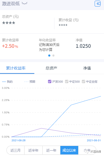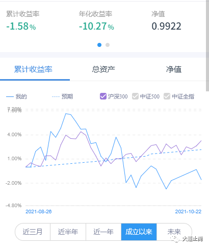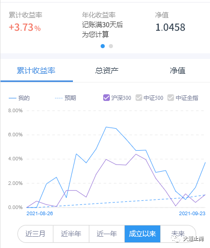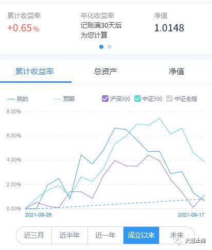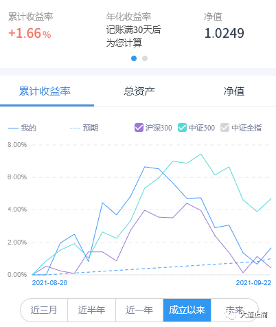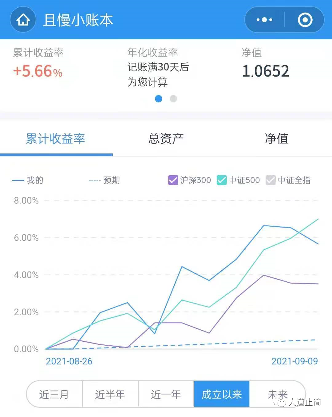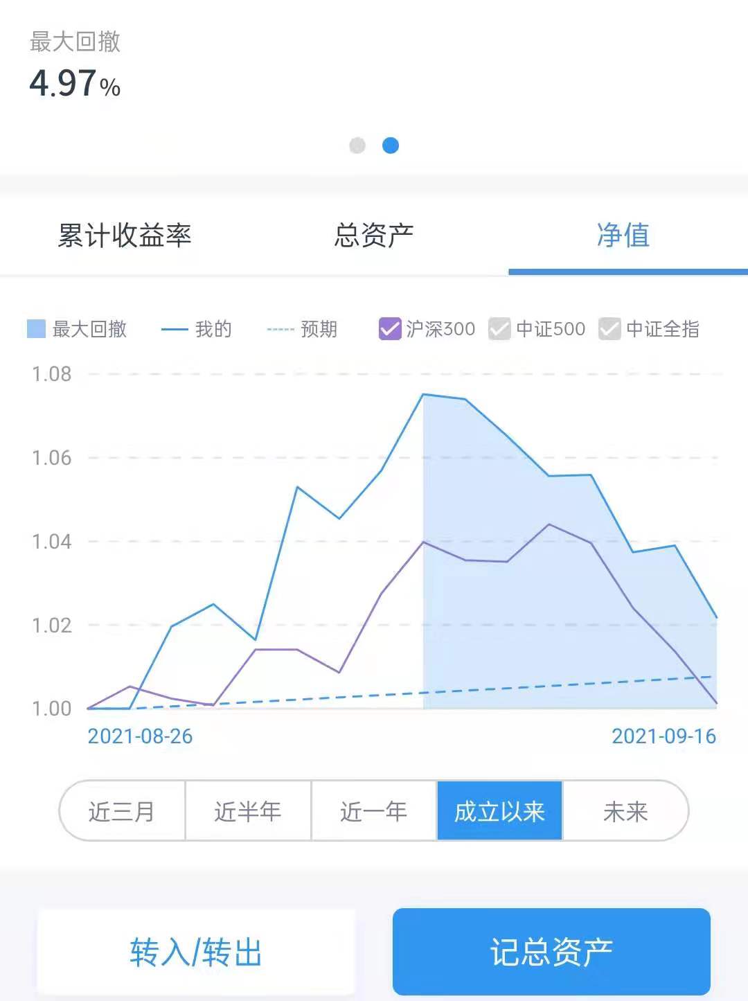 账户运行不到一个月,净值走了个倒V字形,中午时收益还是负的呢,尾盘收回来一些