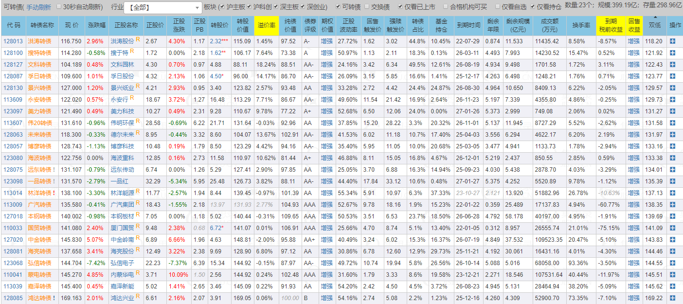 123080.sz 海波转债 ¥124.30 ¥120.38 3.26%