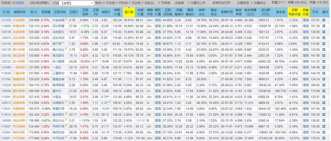128085.sz 鸿达转债 ¥131.38 ¥128.50 2.24%