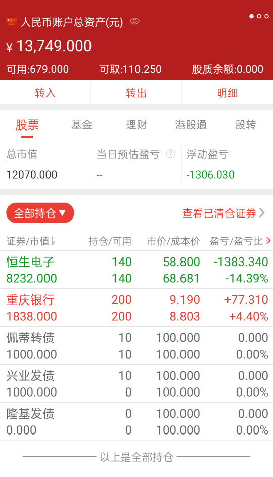 本次轮出几乎都是带着浮亏出货的,这就是轮动要面临的结果!这会券商结算,很多当天的数据看不了,所以亏损比例不好算,我也懒得扒拉历史数据!