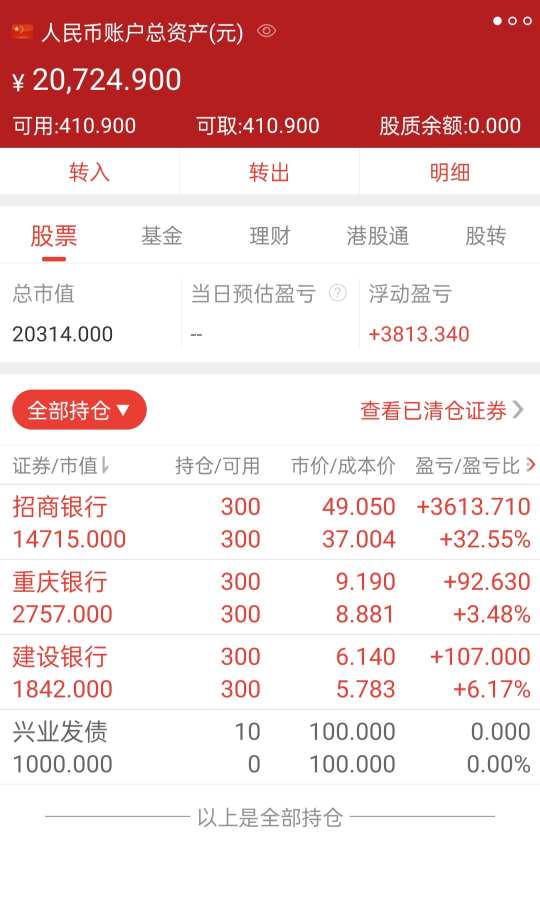 昨天比较忙,没有来得及更新持仓变化,今天更新一下,就是将强赎的国贸转债,换成了星帅转债!其他无变化。