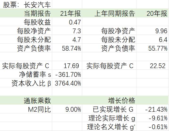 如果理论增长率 g' 远远大于实际增长 G,则说明股票存在超跌情况,比如长安汽车。