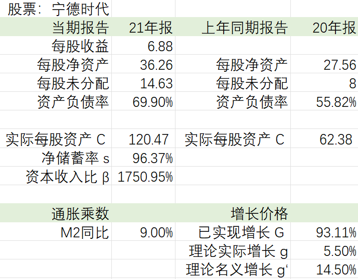 但对于成长股,情况要复杂的多。比如宁德时代,已实现增长G 远远大于 g’。这可能是由于技术突破、政策支持的原因,导致资本收入比发生剧烈变化;也可能是因为股票价格存在泡沫。需要仔细评估。