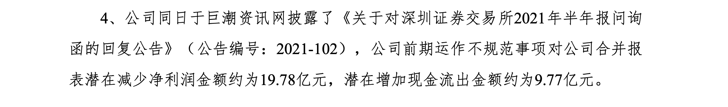 另外可能追溯的利润调整,19个亿,去看下奥马2020年净资产多少?归母21亿,最大口径调整也不会导致净资产为负,不会带退市风险警示。