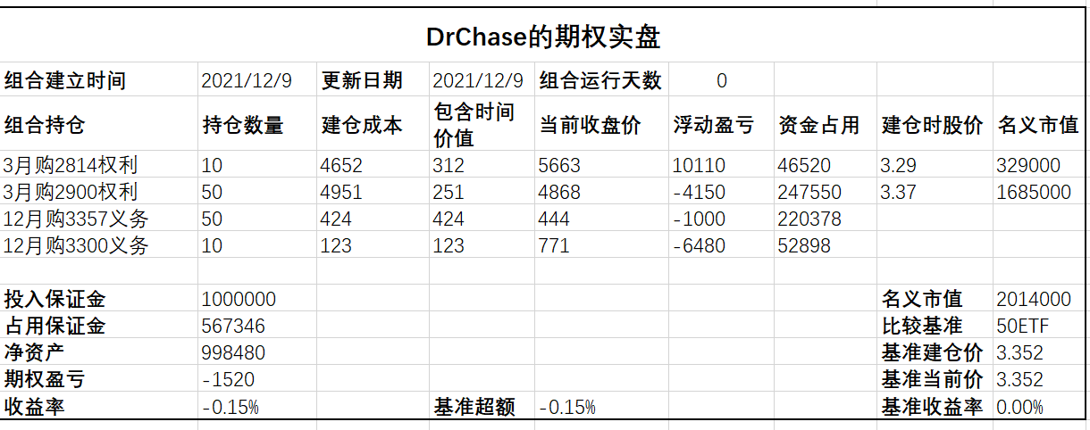 今天才发现上周五统计结果时忘记更新50ETF的收盘价,导致亏损少算了,今天更正过来。