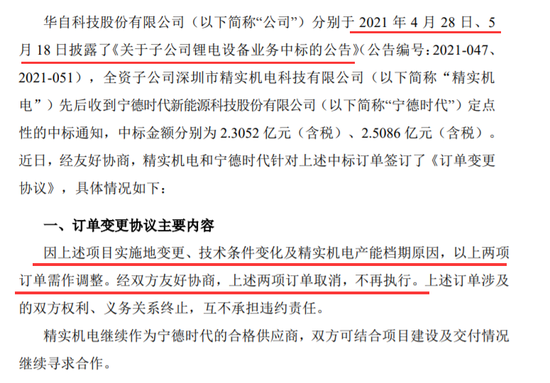 4,华自科技:与宁德时代的4.8亿元订单取消