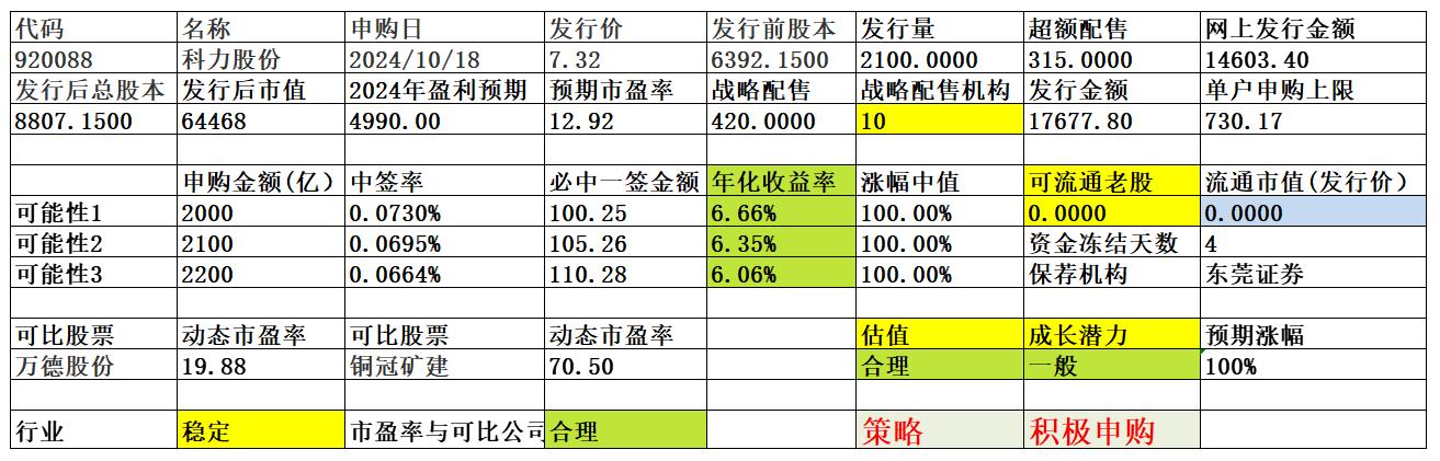 请教一下,120个,参加科力打多少钱合适。剩下的买逆回购?铜冠申购资金1659亿,新股当前氛围狂热,这股申购资金肯定比铜冠多,少则1800亿,多则超2000亿,中100股门槛起码90万以上,甚至可能超100万,120个浪费不多,全仓买个安心