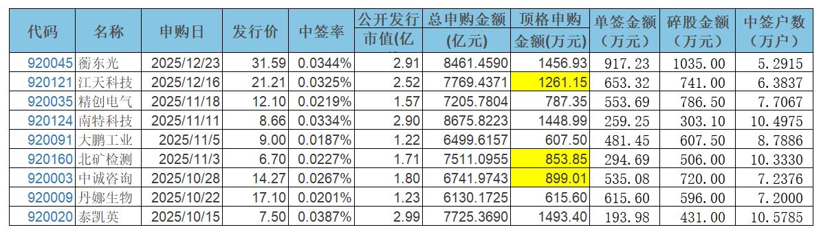新股做为主业的我,最近三年的打新收益,一年比一年差,几乎到了斩杀线,难以为继。2024发行23只,平均收益0.17%,1只破发,平均门槛152万,平均申购资金2263亿。2025发行上市24只,平均收益0.10%,无破发,平均门槛394万,平均申购资金6709亿,最近3只门槛分别是554万,653万,917万,淘汰了一批又一批参与者。去年首日7只临停,1只妖股,924后,平均涨幅421%;今年平...全年参与北交打新,和你感受是一样的,上面那些张口年化4个点甚至5个点的就很迷醉,投入700万张口就来蘅东光1+1能带来多少增益,真怀疑是故意引流的还是到底参与了没有,如果可以无限加杠杆甚至借贷,绕标等手段的话,还提什么年化收益率呢?