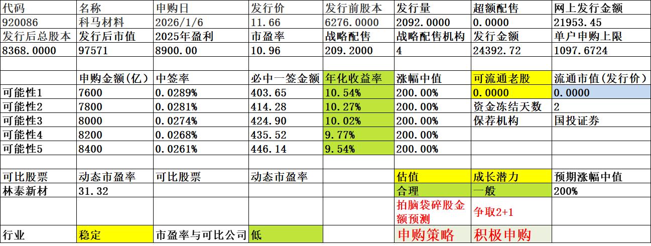 申购建议:公司所处行业稳定,公司质地尚可,发行动态市盈率较低,无流通老股较多,可积极申购。本次顶格估计是2+1,申购资金8000亿左右。