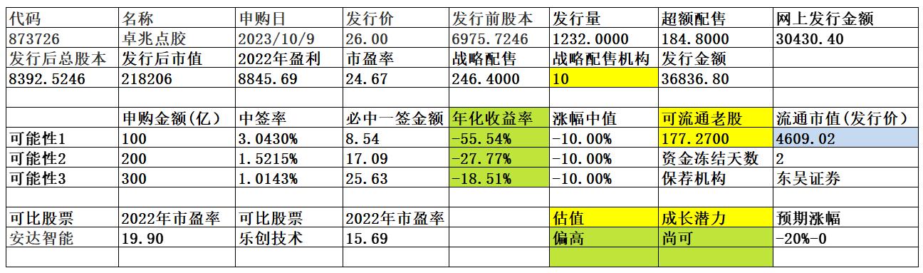 六、结论。公司所处行业发展较快,但竞争激烈,公司质地尚可,发行市盈率与可比公司相比较高,流通老股不多,10家战投,2023年上半年业绩增速较快(但持续性有待验证),发行量较多,发行价价格较高。申购的价值不大。