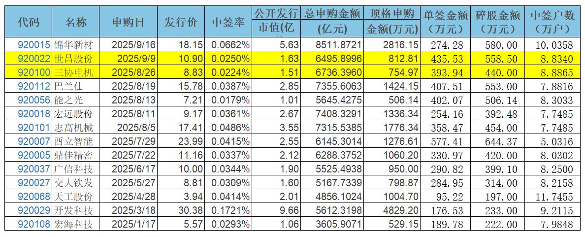 2、申购总户数从能之光最高的70万户,降到了锦华新材的52万户,大资金增长小资金减少,冻结资金可能不足7000亿,这样并不是只有顶隔2 1,低于顶格几十万的也能2 1,所以碎骨就更少了,2 ...