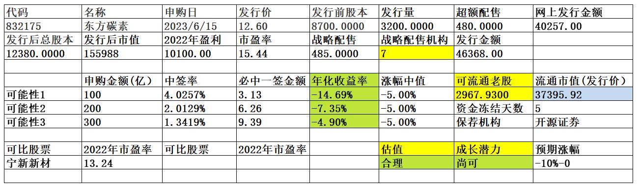 1832175东方碳素3200.0000直接定价12.6015.482023-06-152023-06-21这个和吉林碳谷一个行业吗?还是和方大碳素一样?东方,战略配售者只要了发行量15%,卖不掉20%的份额说明战略配售者不看好?