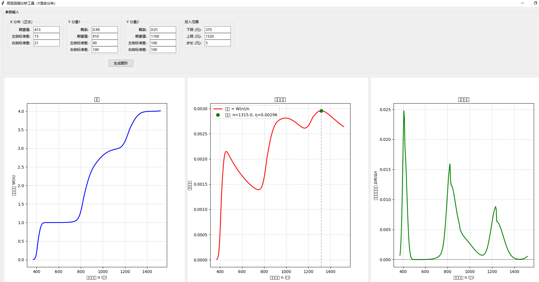 答:看绿线,纵坐标乘以每手利润就是每1万新增资金收益。 1350左右大概是0.001*3000=3