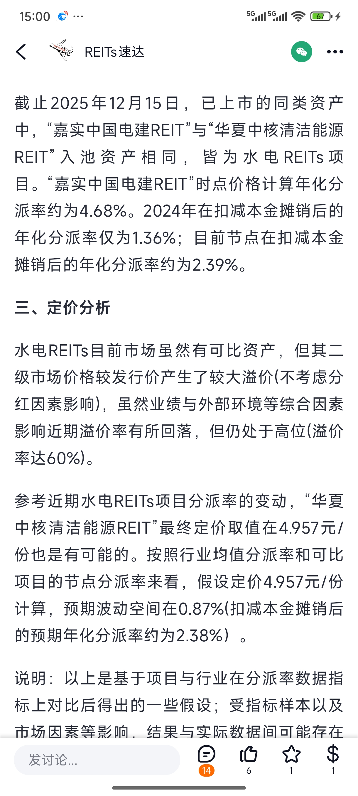 各位,有没有人逆向思维申购华夏中核清洁能源REIT
