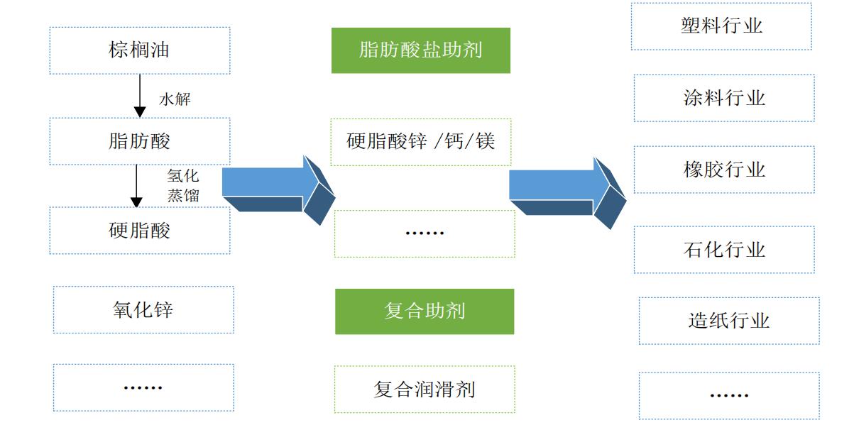 通过多年的经营积累,公司在高分子材料环保助剂行业已具备丰富的行业经验,对“棕榈油-脂肪酸-脂肪酸盐”产业链具有深刻的理解。目前已成为我国环保硬脂酸盐产品的主要供应商之一。公司的环保硬脂酸盐产品采用目前主流的直接法生产工艺,无生产性废水排放,符合国家对产业节能降耗、绿色环保的要求。