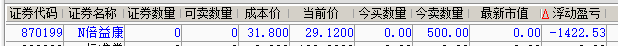 不知道有没有本坛的朋友抓住尾盘集合竞价的机会逃掉...正确的操作技巧应该是这样的,在2点55到57分的时候,撤销一切未成交的卖单,恢复可卖状态紧盯盘面,发现尾盘异常的大单竞价时,比如今天倍益康的情况,马上填好巨低的价格,比如填28元,在2点59分50秒左右确认提交指令,确保低价抢先成交倍益康最后的报价状态,那些填30.80、30.81等等的,讲真不知道在想什么...你对尾盘集合竞价可能不太了解,看看尾盘竞价分时图,最后一秒出现的高价,看到这个价格肯定来不及操作卖出了,主力买入也不是按照30.8委托的,5500手应该填了更高的价格,比如发行价31.80,卖一以上只能排队成交5500手,正好能成交到30.80。挂30.80,30.81的委托单不是尾盘挂的,应该是早盘就挂了。
