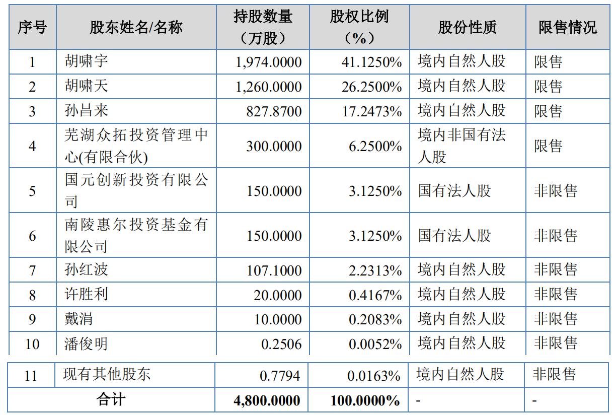 南陵惠尔投资基金有限公司持有150万股,并且是本次募集的战略投资者,承诺认购88.5715万股,因此自己砸盘的概率不大。