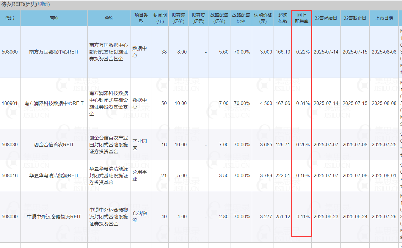 最近4次reits都参加了,配售率0.2~0.3%不等,配售率数据集思录上就有,我估算了一下差不多有7000多亿资金再参加,如以此资金计算,本周3的这只配售率大概0.15%左右,再加上占用周3~周日的资金,其实收益不高。我大胆猜测下reits收益率是不是就是北交所未来打新的底线了。