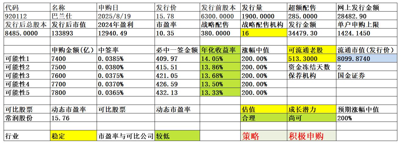 巴兰仕8.19申购单户申购上限1499.4万,如果总申购资金超过7500亿,顶格就拿不到500股、取整后只能拿400股(399+100碎股),那就产生大量碎股,碎股门槛显著降低。而总申购资金超过7500亿的可能性还是有的,要不再努力一把~