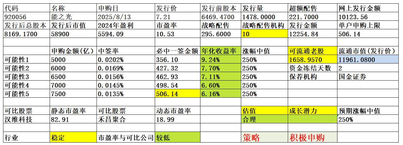 明晚看宏远股份的申购资金大于7800亿的话周三能之光的总申购资金也大概率大于7107亿。