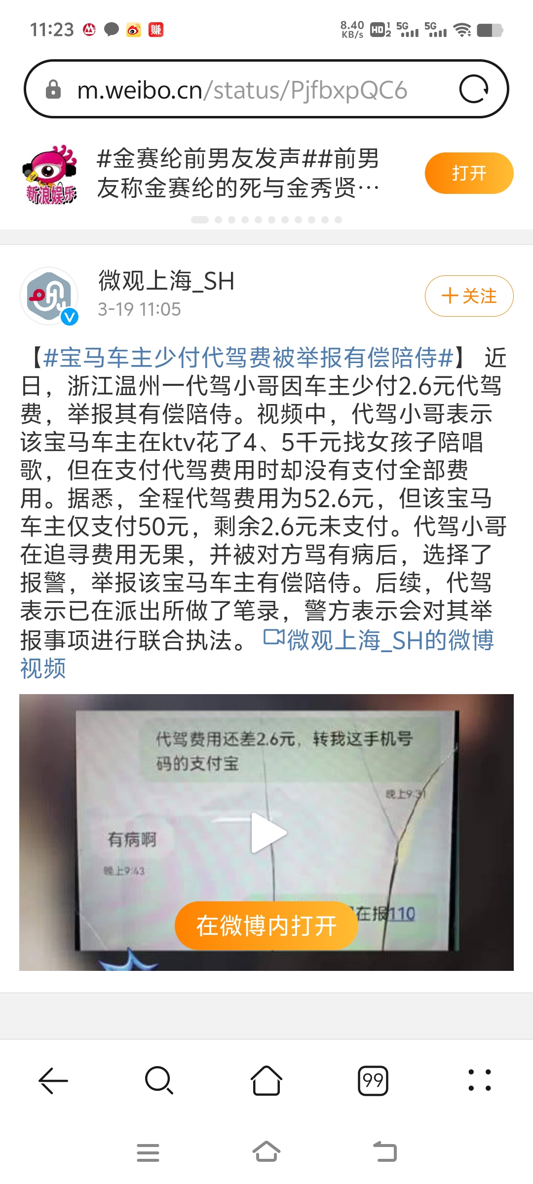 好像是,顾客少给代驾司机2.6元,代驾司机直接报警,顾客正在KTV消费,直接被警察带走。