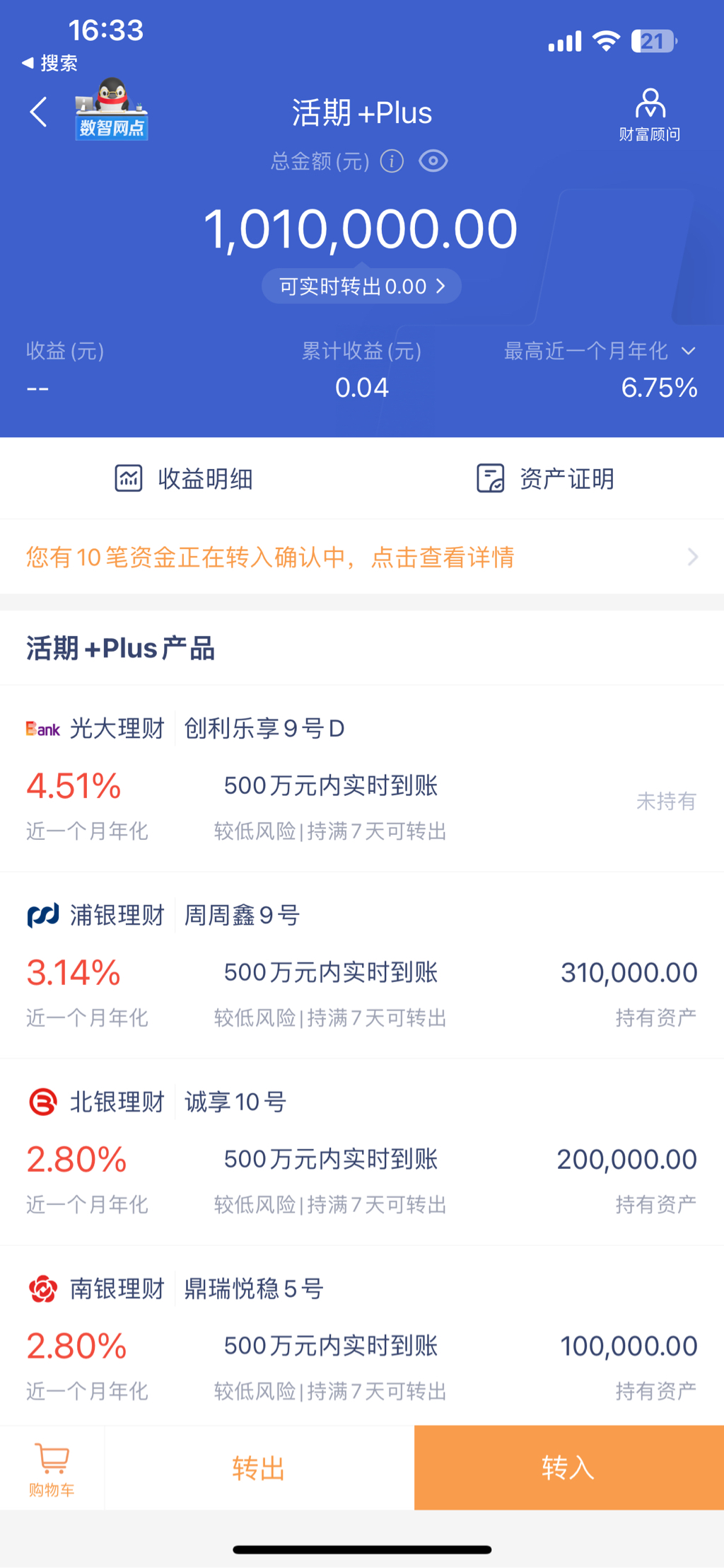 这也错了,因为他们的活期+PLUS底层资产都是净值型产品,净值只有交易日才有,周日是沒有的