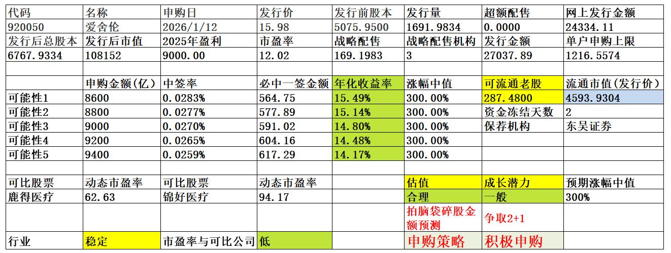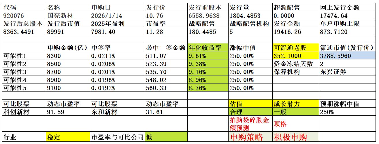 申购建议:公司所处行业稳定,公司质地尚可,发行动态市盈率较低,无流通老股较多,可积极申购。本次顶格估计是2+1,申购资金8800亿左右。