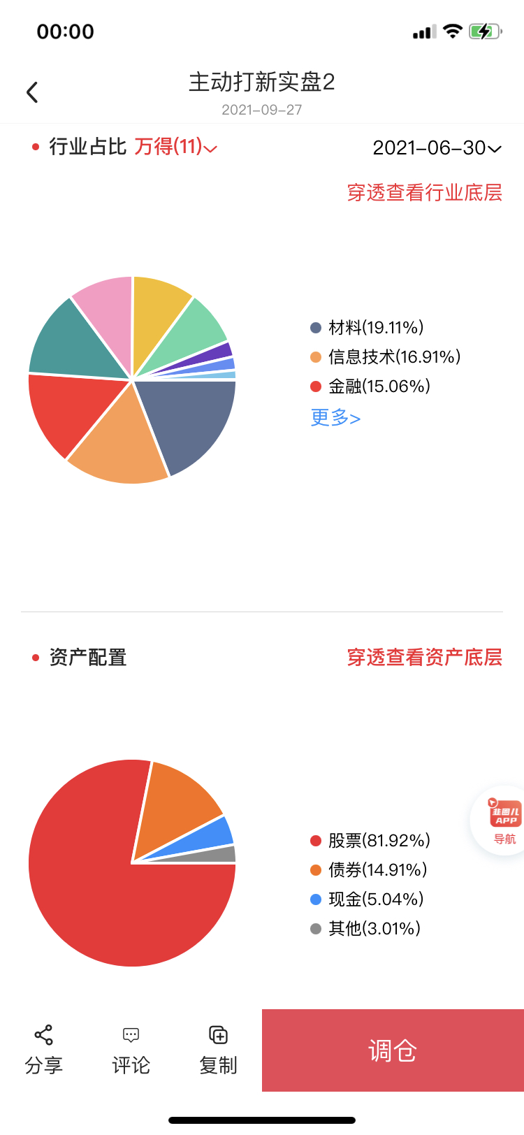 穿透持仓来看,行业比较均衡,股票占81%正合我意。