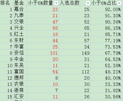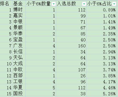 2. 有部分基金公司打新有了显著的下滑,数了一下这个月获配数量低于6%的基金公司产品数量。