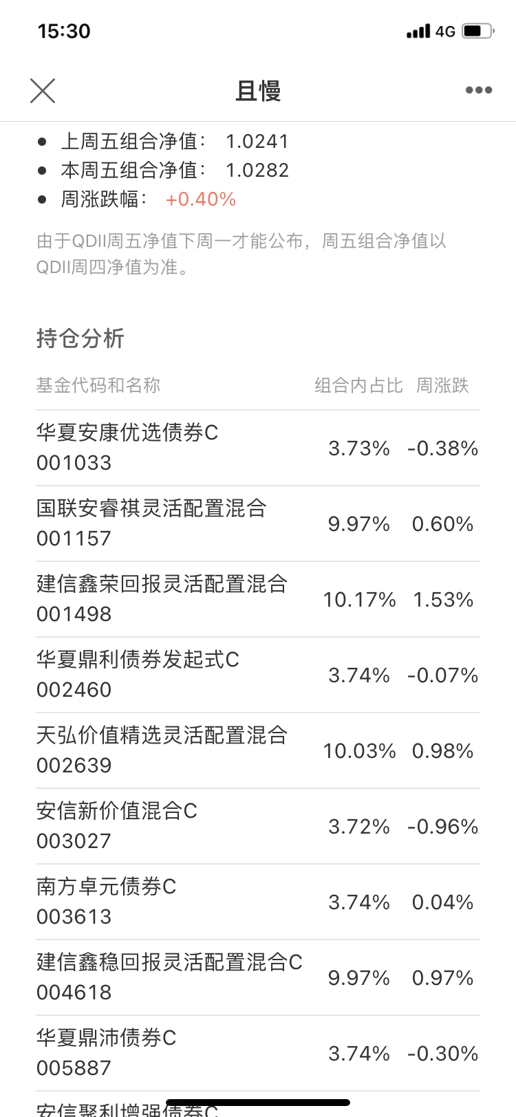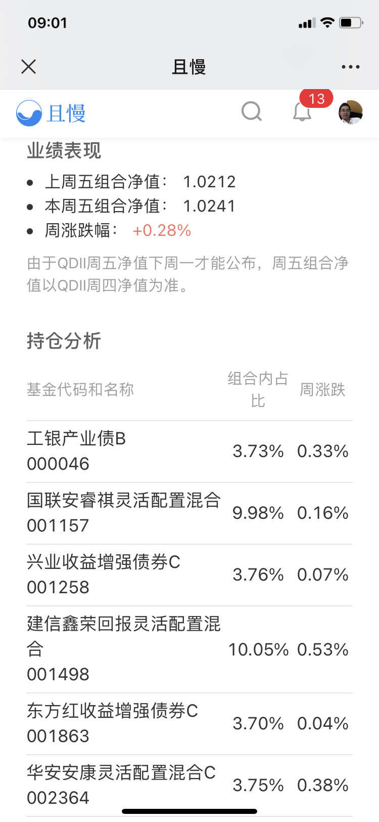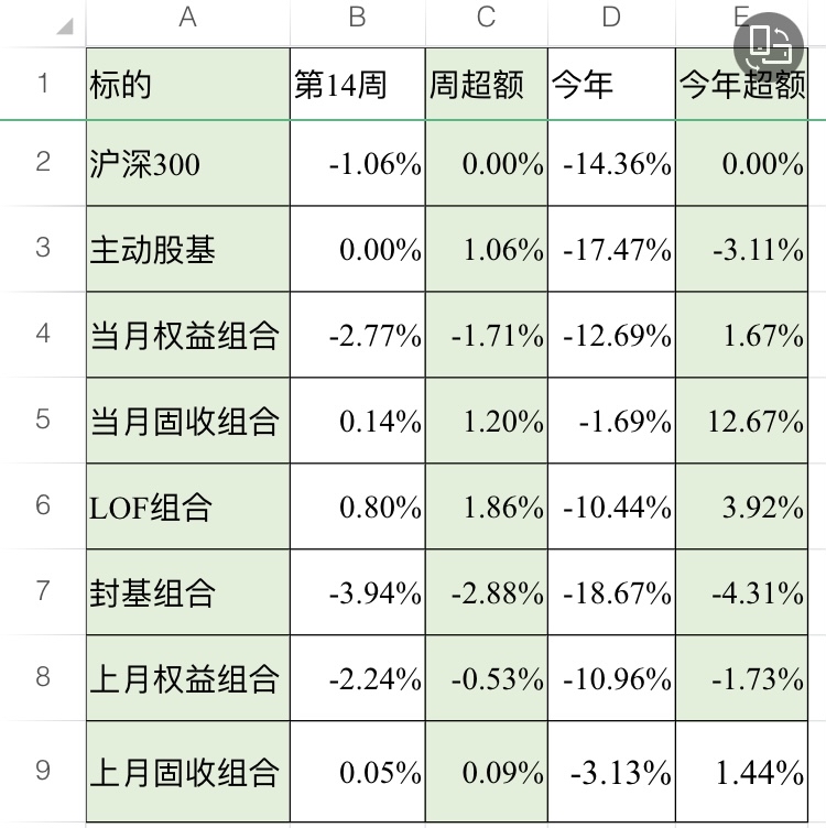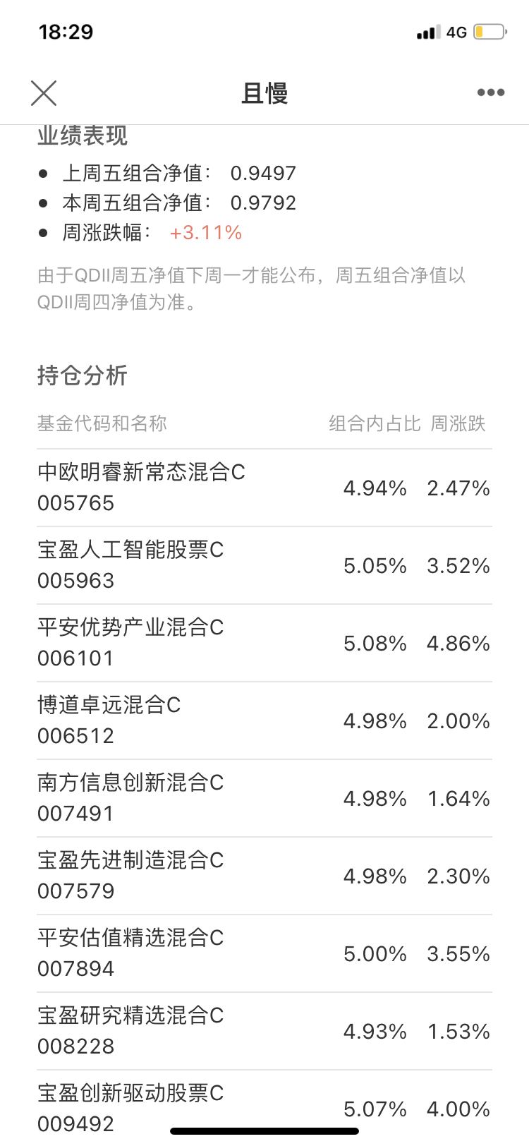 本周组合表现还可以,只是净值依然在水下,不知道什么时候才能浮出水面。