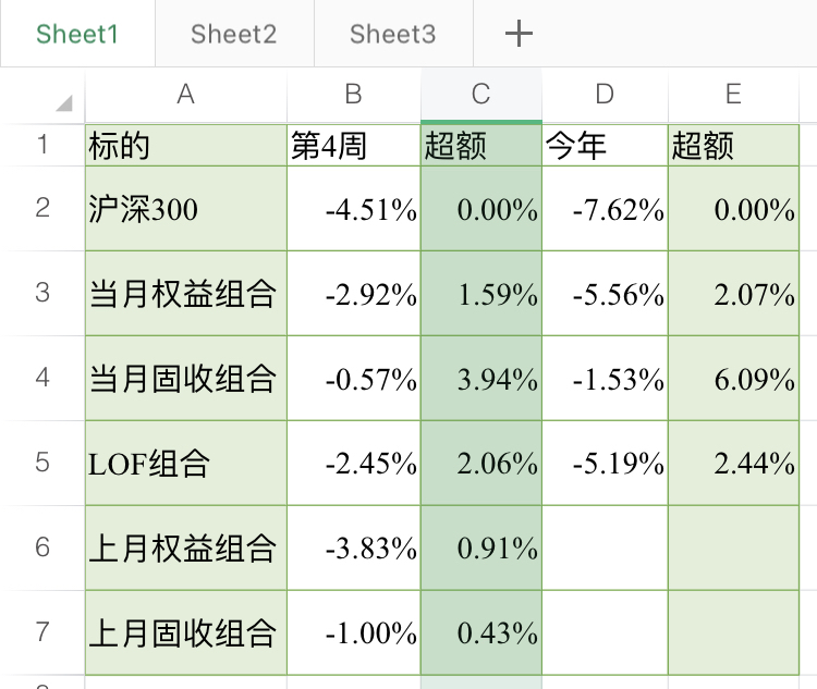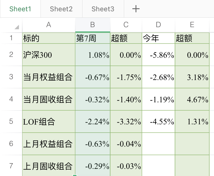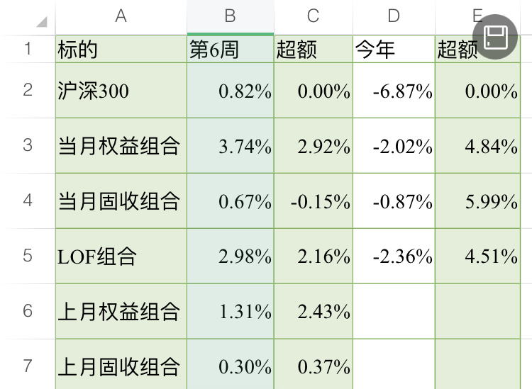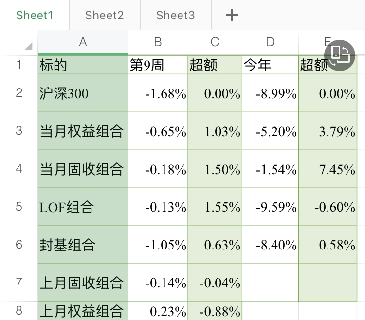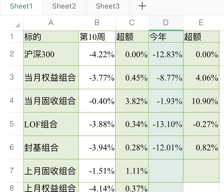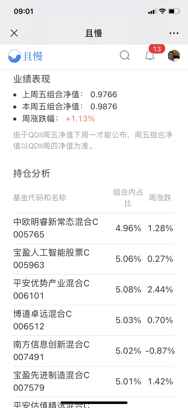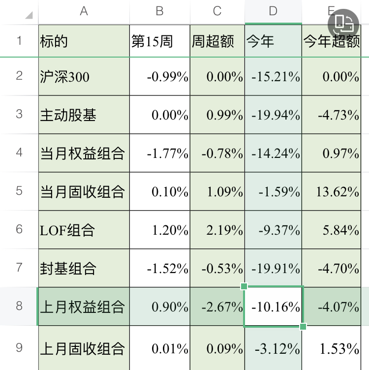 本周组合表现还可以,只是净值依然在水下,不知道什么时候才能浮出水面。
