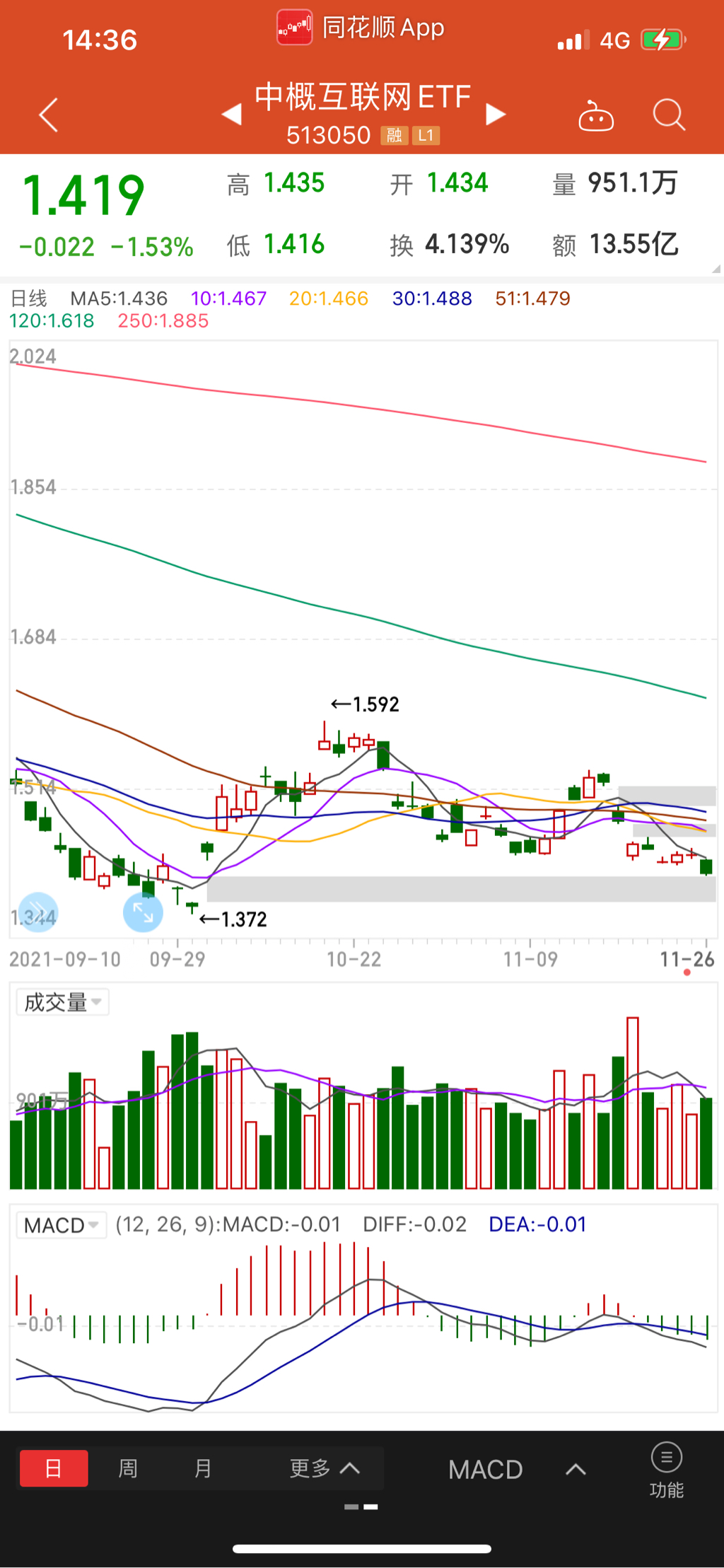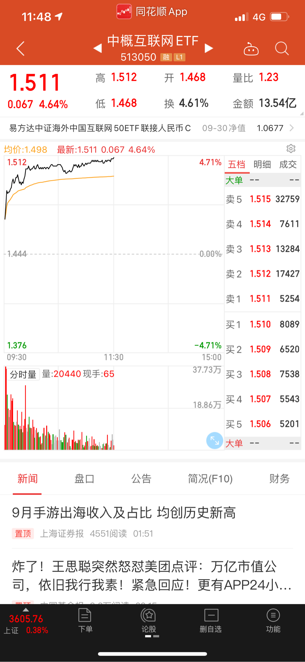 下午加了很多159605,至于这个513050高溢价,不参与不羡慕,笑一笑就好,