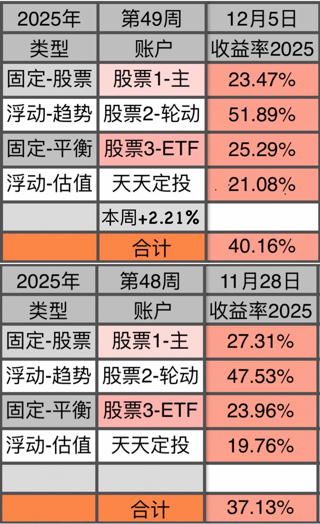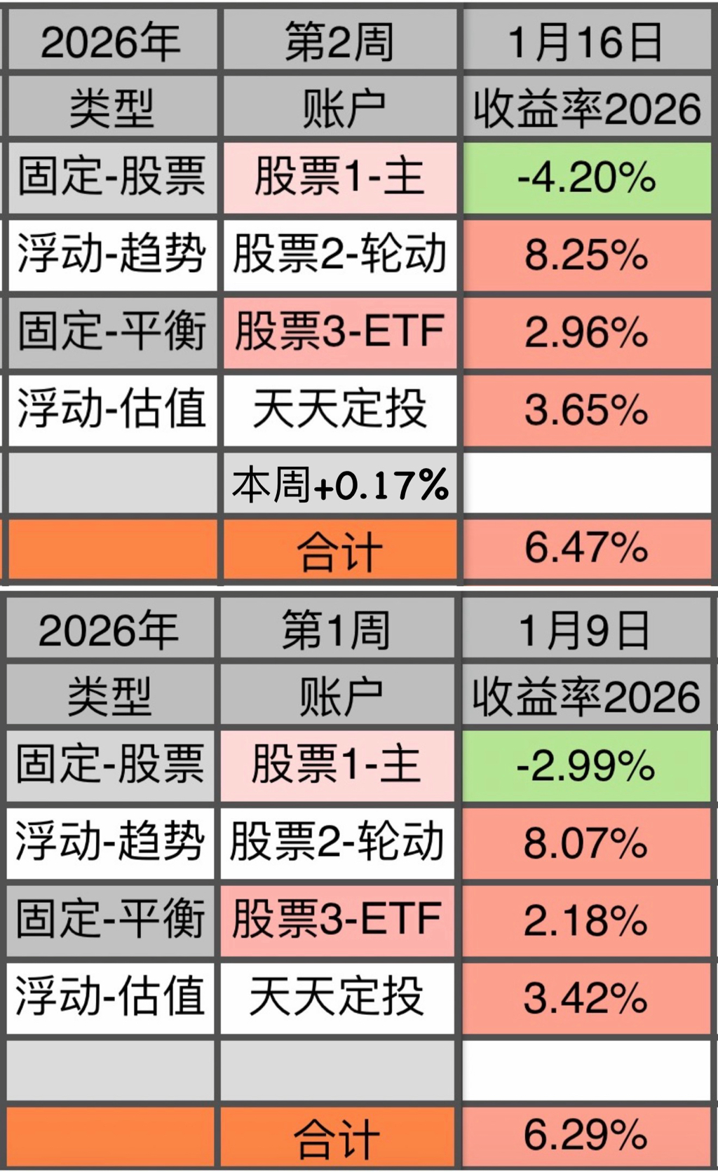 4为场外基金,每周依据数据进行买入/卖出/不动 的操作。