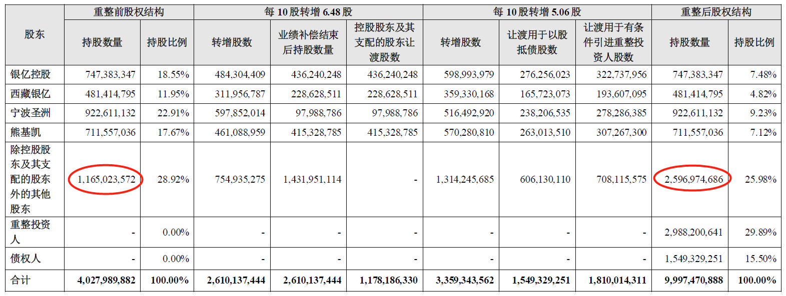 散户送股前后比例大概是1:2.23,现价2.62买入相当送股后1.17的成本价,虽然有一定的不确定因素,但不比重整方案都没批的大集香吗。。。。乐观判断银亿年底前完成重整及送股,现价有一定的吸引力。