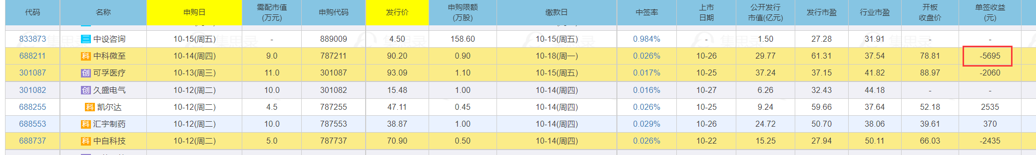 今天上市的新股“中科微至”破发,一签浮亏5000多元