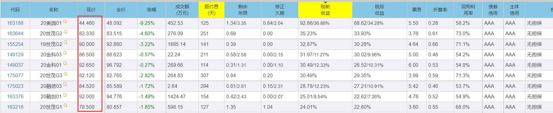 我就找了个美元债行情网站看了下他们目前价格和收益